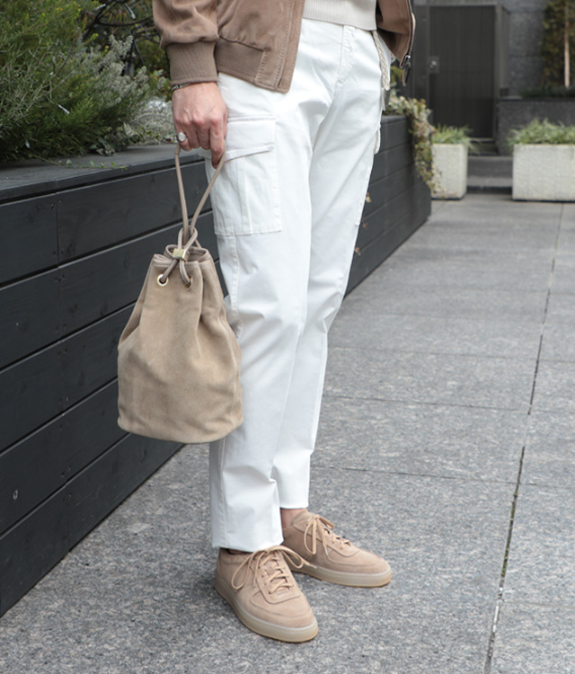 【ファッションディレクター干場義雅氏×BRIGLIA 1949 コラボ別注モデル】BRIGLIA 1949 ブリリア 1949 カーゴパンツ ノープリーツ コットン ストレッチ SLIM ANNAPOLIS 0120/ホワイト