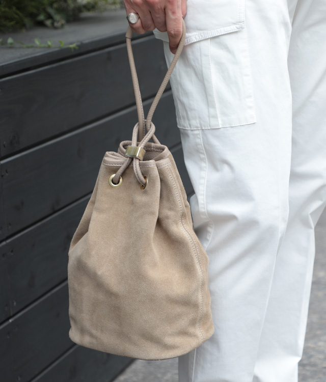 EXCLUSIVE 【菅原靴店別注カラー・素材】【返品不可】S.MANO エスマーノ バッグ 巾着 スエード シルバーパーツ SMN002 SMANO GREY SUEDE/グレー