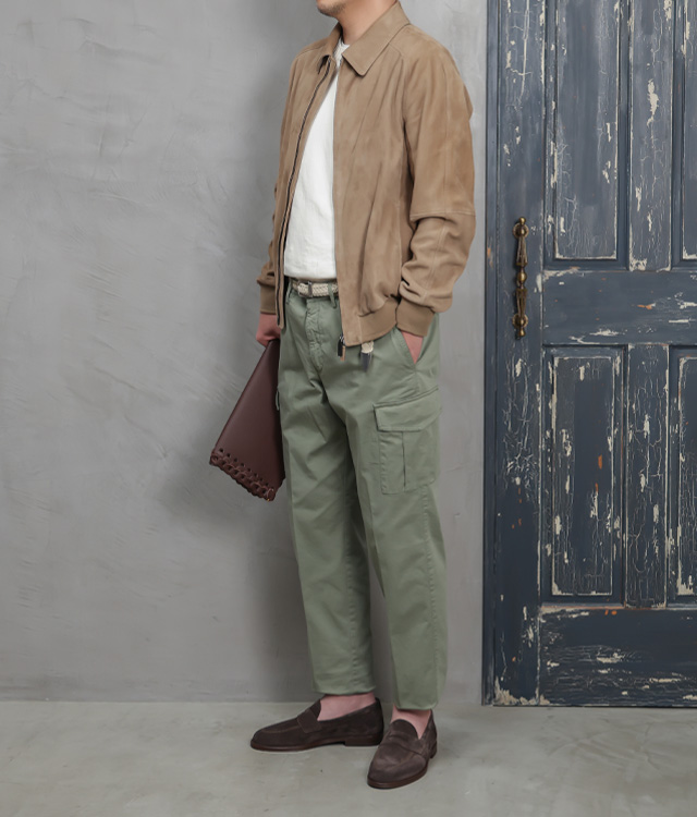 【ファッションディレクター干場義雅氏×BRIGLIA 1949 コラボ別注モデル】BRIGLIA 1949 ブリリア 1949 カーゴパンツ ノープリーツ コットン ストレッチ SLIM ANNAPOLIS 0120/ホワイト