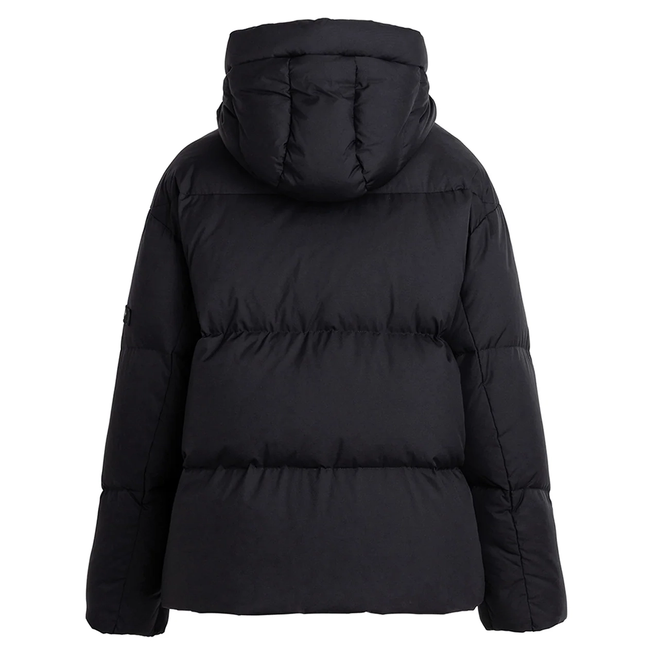 顔まわりを包み込む立体的なフードに、目を引くメタリックジップを採用し、カジュアルながらも上品な表情に。