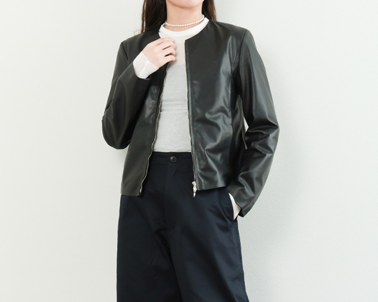 EMMETI エンメティ BRYANNA ブリアンナ レディース ライダース ジャケット シングル ノーカラー ナッパシルク レザー ラム CASHMERE/ライトベージュ