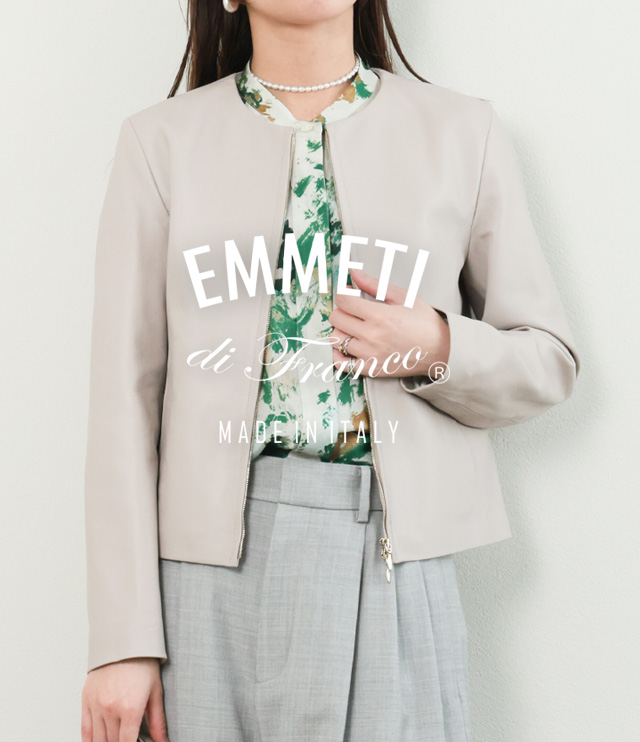 EMMETI エンメティ JENNY ジェニー レディース ジャケット ブルゾン シングル スタンドカラー スペシャルレザー ラムナッパ ショート丈 SABBIA/ベージュ