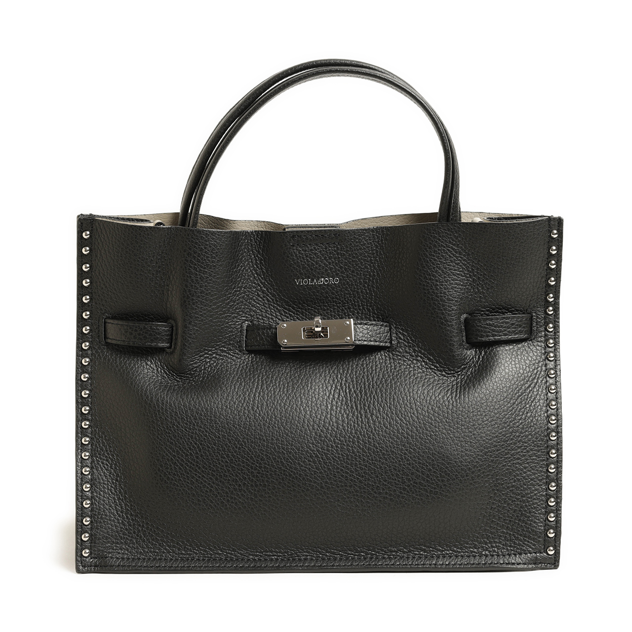 ヴィオラドーロ VIOLAd'ORO ハンド ショルダー バッグ レザー イタリアンレザー ダブルフェイス ターンロック スタッズ 2WAY V-8993 BLACK/GRAY/ブラック