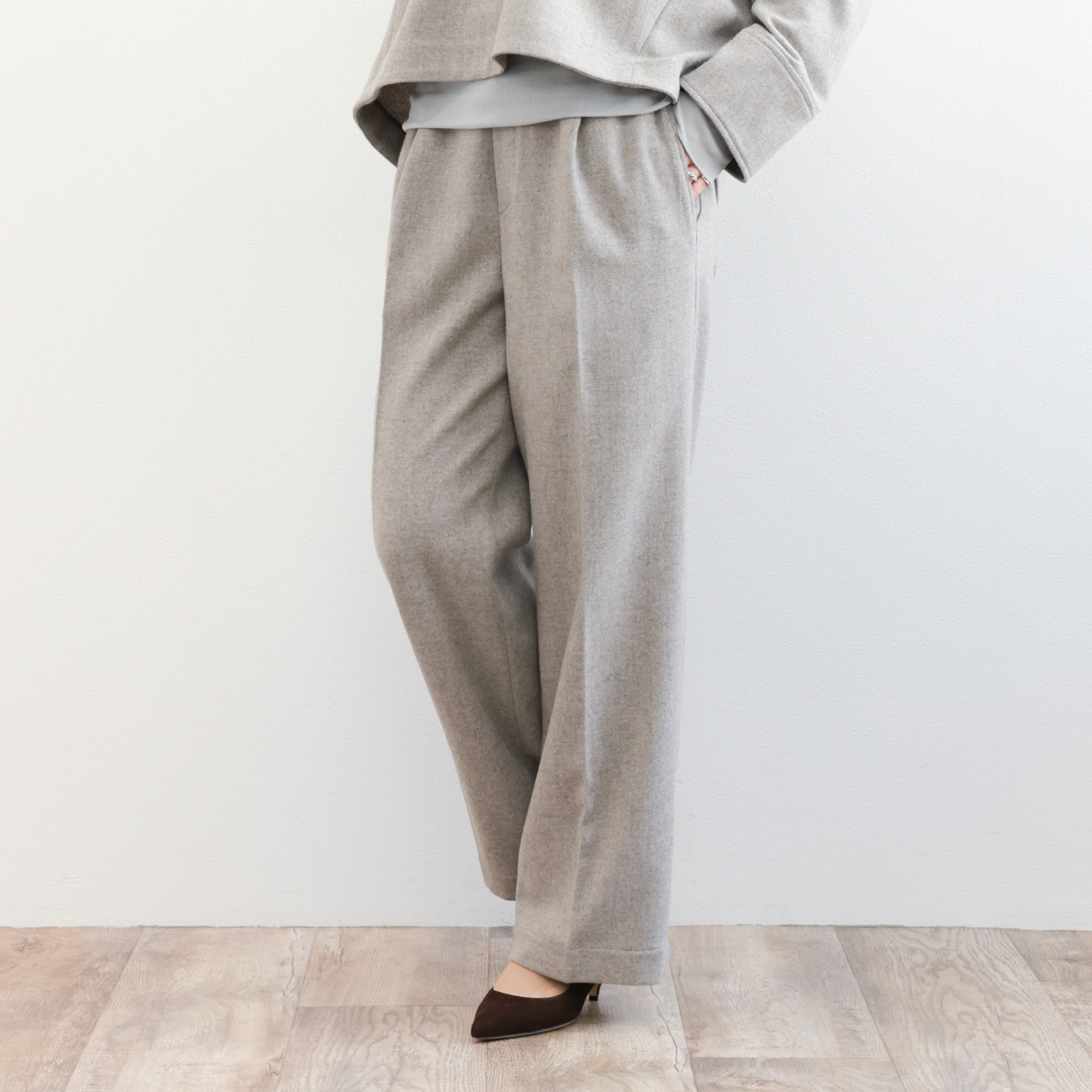 MICA&DEAL マイカアンドディール ツイードギャザーパンツ イージーパンツ 0125403345 Tweed gather Pants ワンタック レディース ウール ポリエステル アクリル ナイロン ストレッチ BEIGE/ベージュ
