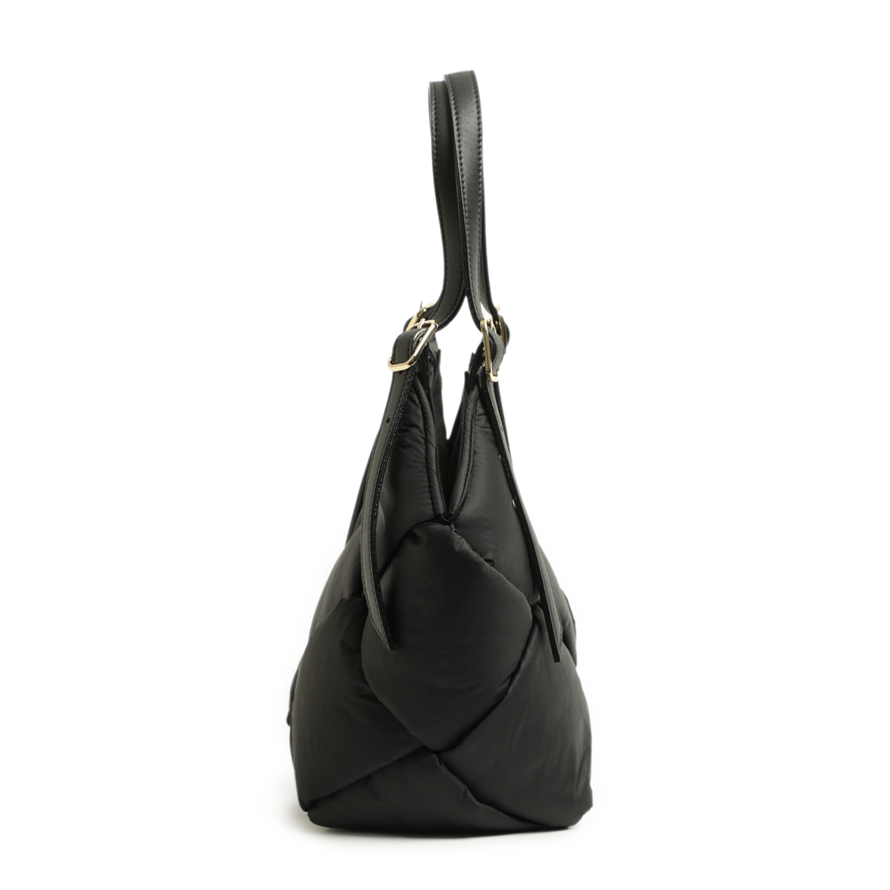 それがこちらの“イントレチャート”デザインの逸品。ボンディング加工を施したナイロンメッシュをボディに使用し、ハンドルはレザーで切り替え。