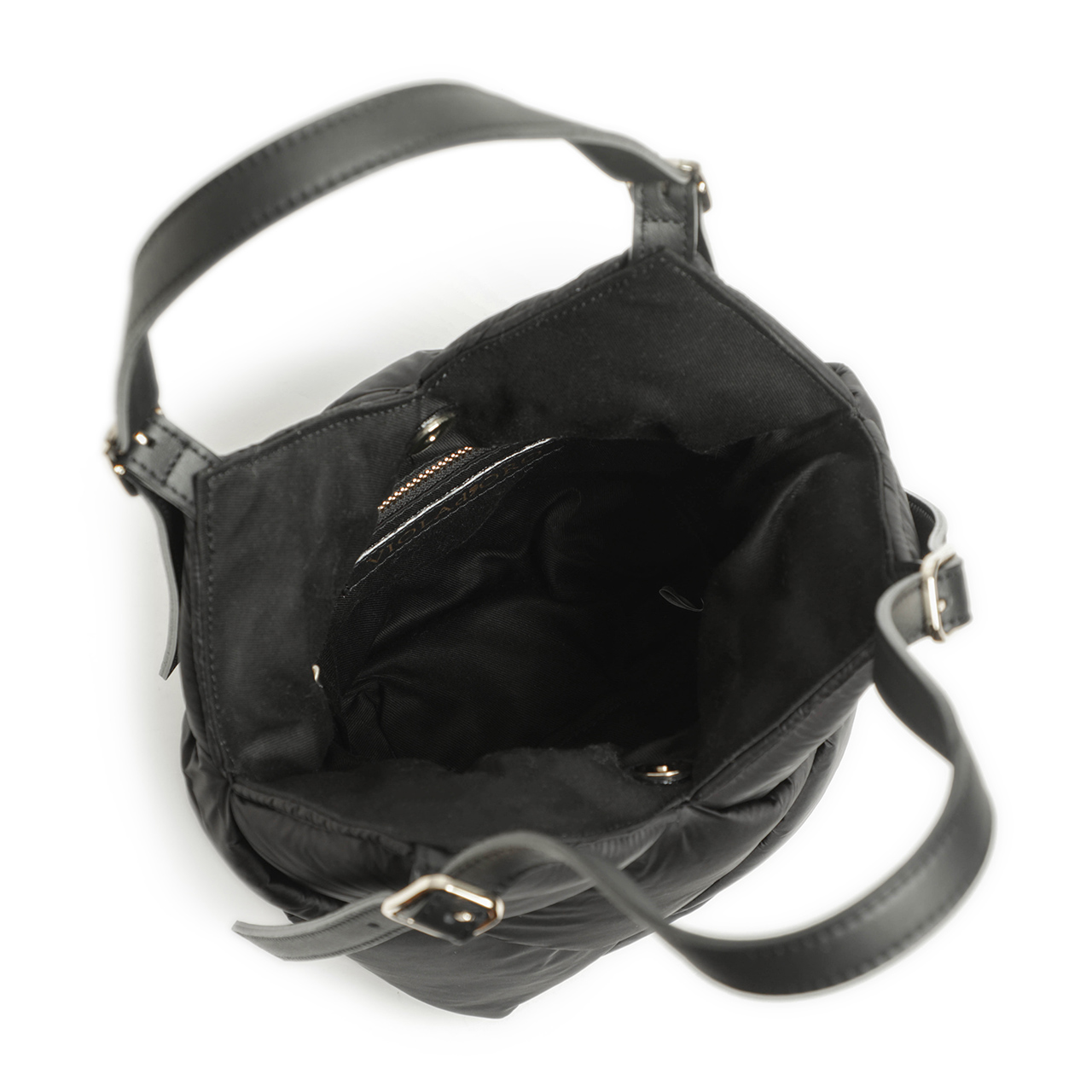 ハンドル部分は牛革で切り替え、引き締まった印象に。全体的なフォルムに丸みを持たせることでエレガントでありつつ女性の可愛らしさも演出します。