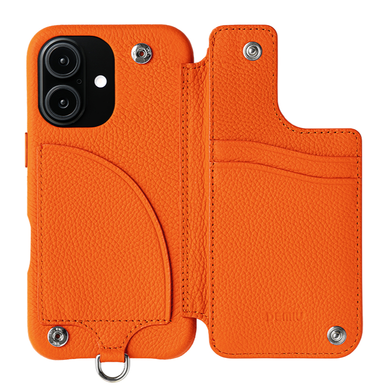DEMIU デミュウ BALLON CINQ バロン サンク スマホカバー スマホケース 牛革 スタッズ カード入れ 背面 手帳型 オレンジ