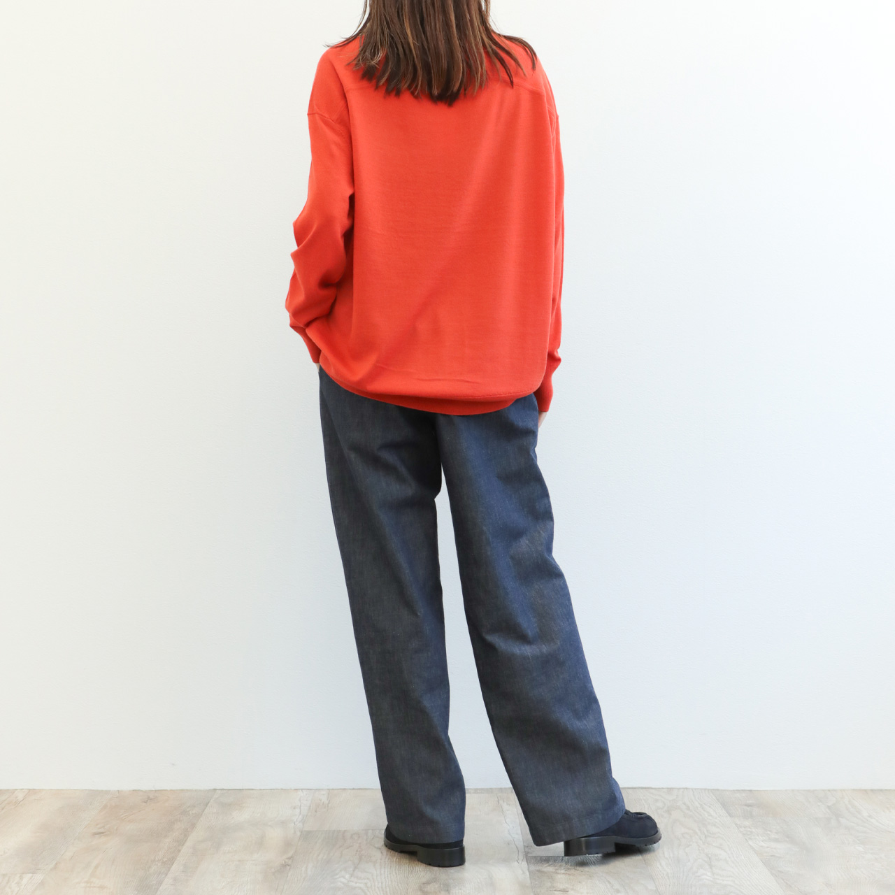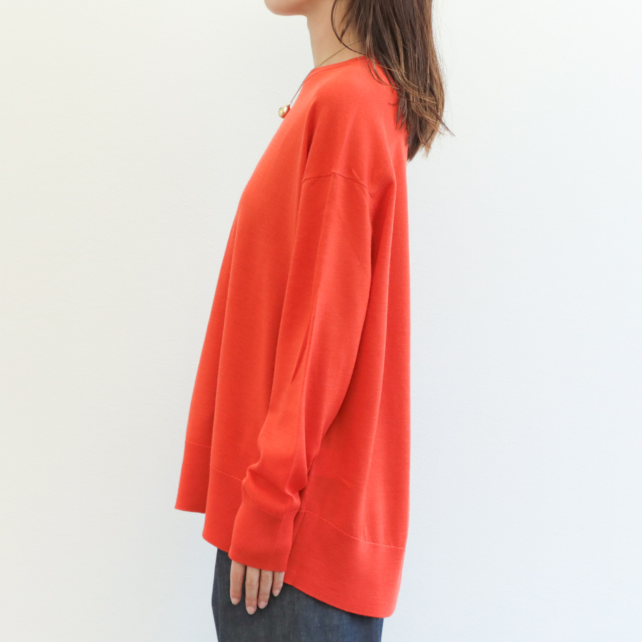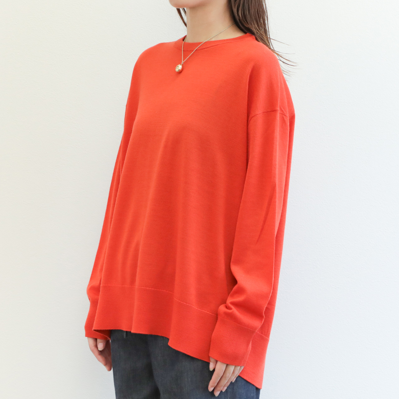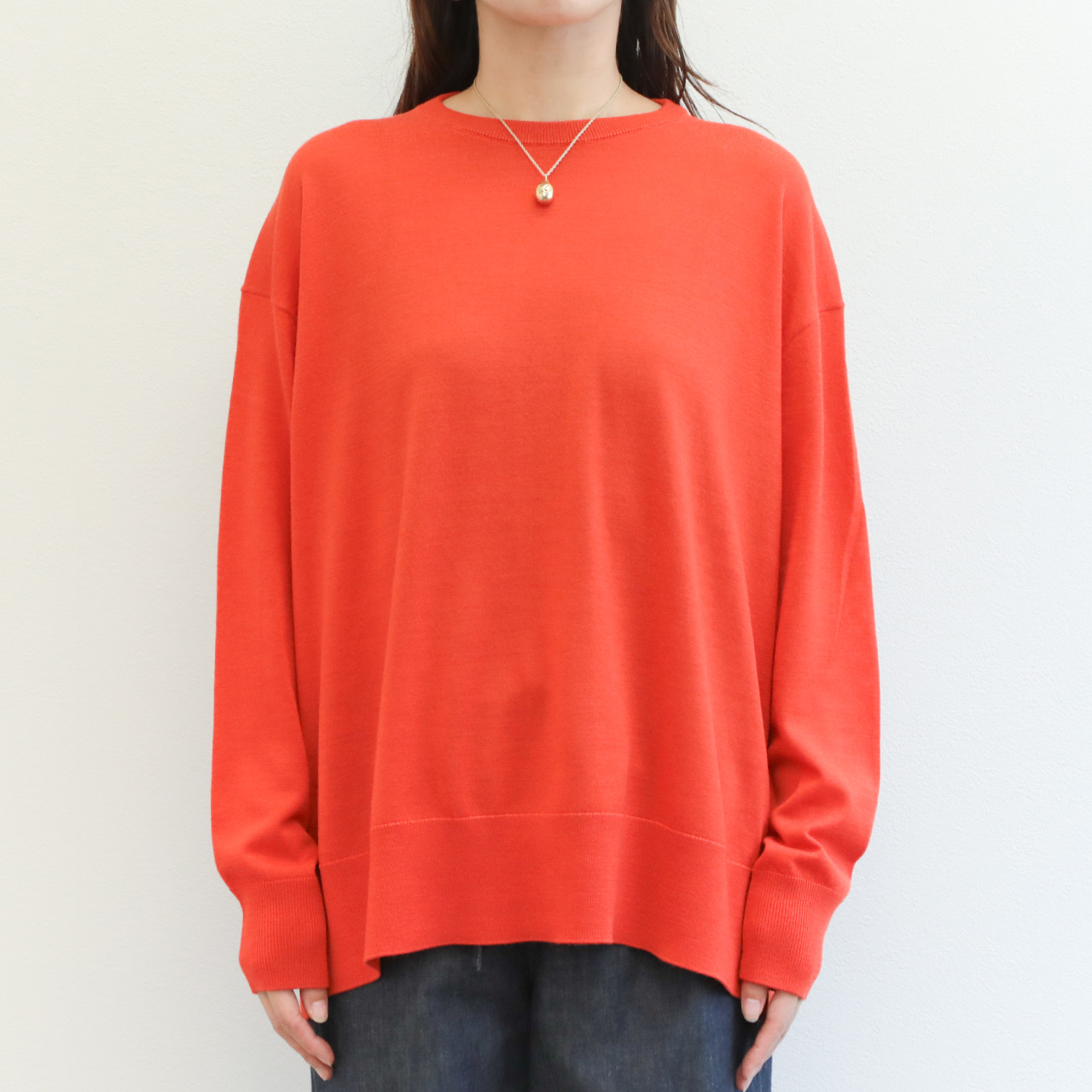 drawell ドロウェル ニット 丸首 クルーネック 長袖 バックフレア ウール 16ゲージ ハイゲージ 4-2-DW-49 オレンジ