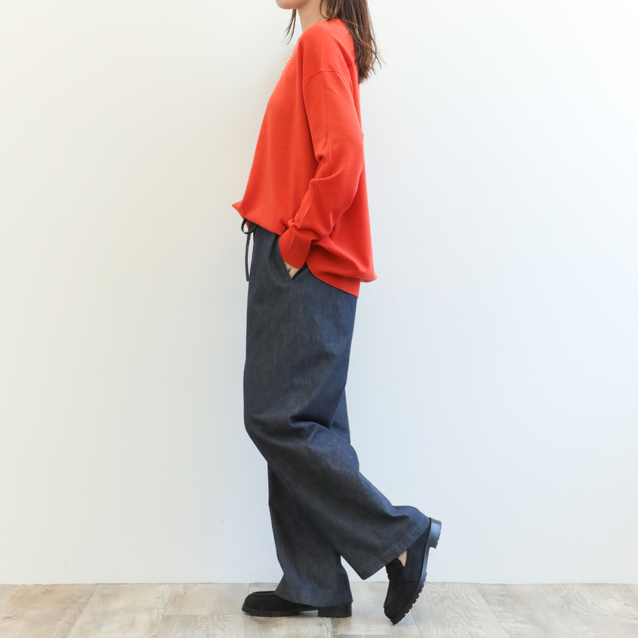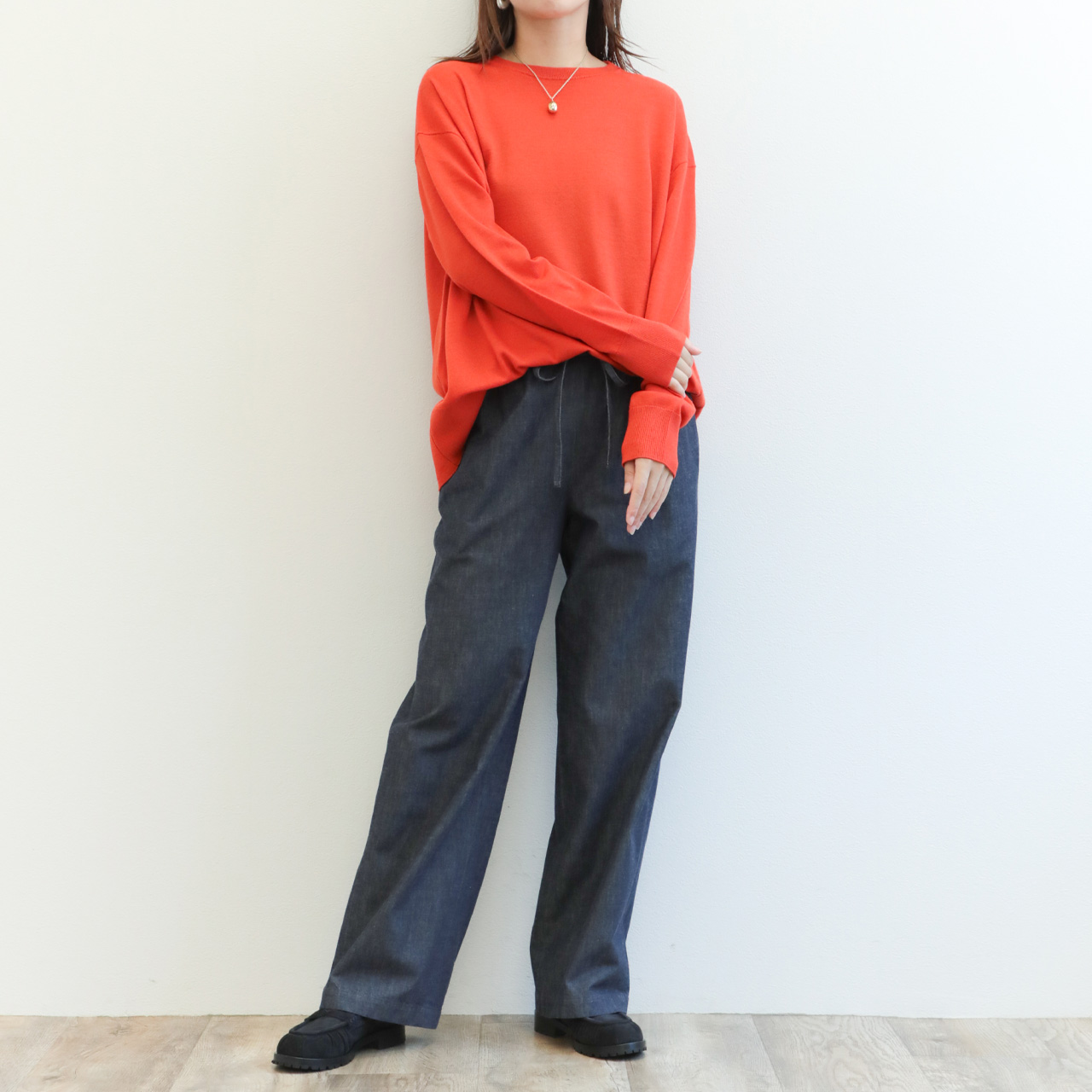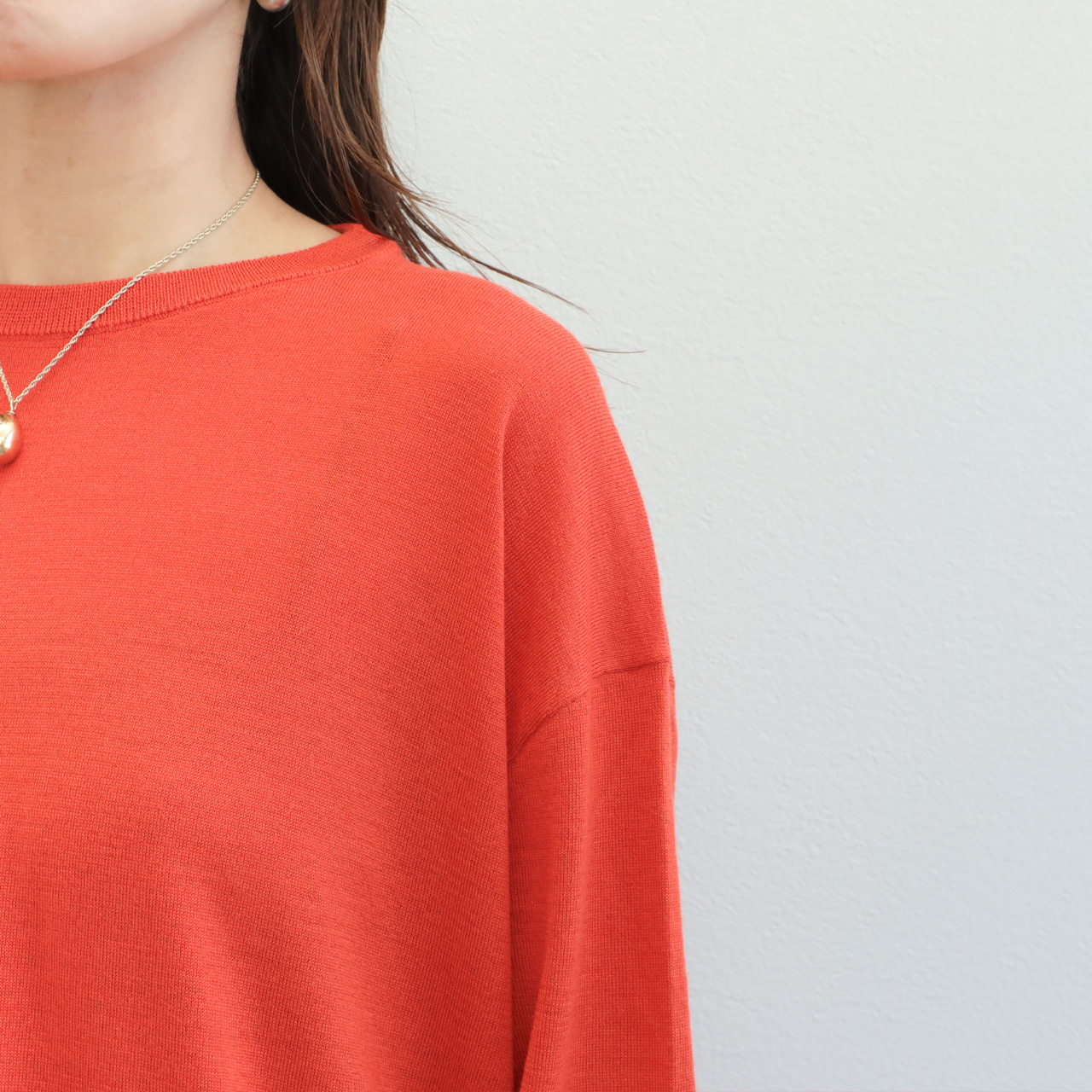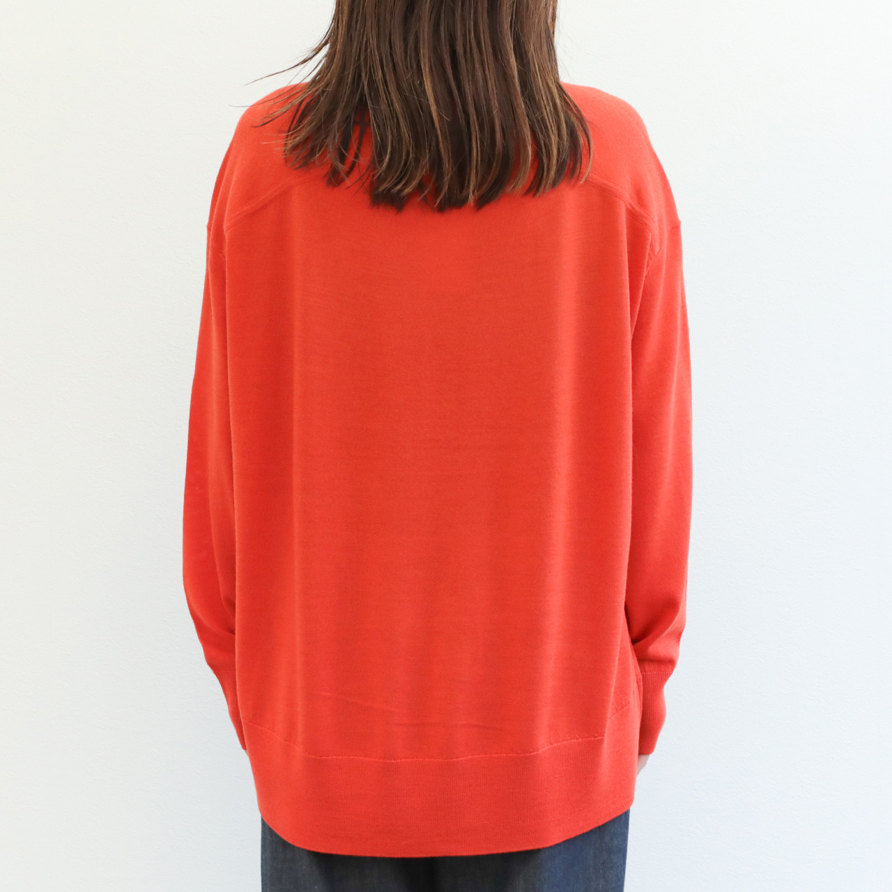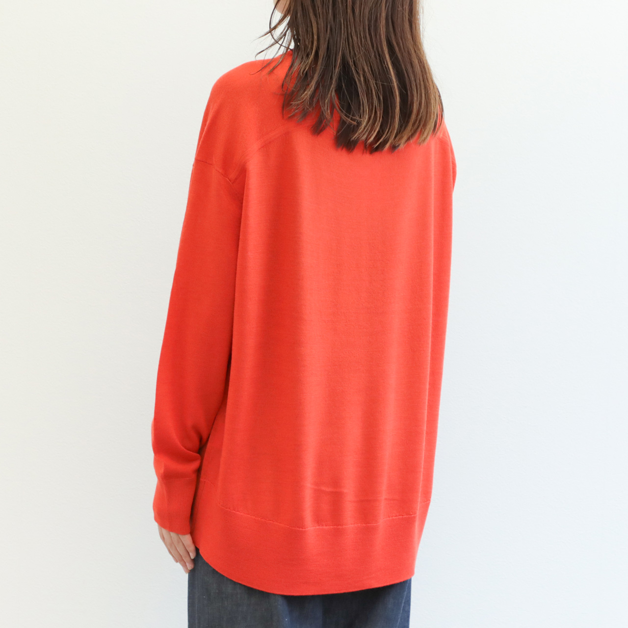 drawell ドロウェル ニット 丸首 クルーネック 長袖 バックフレア ウール 16ゲージ ハイゲージ 4-2-DW-49 オレンジ