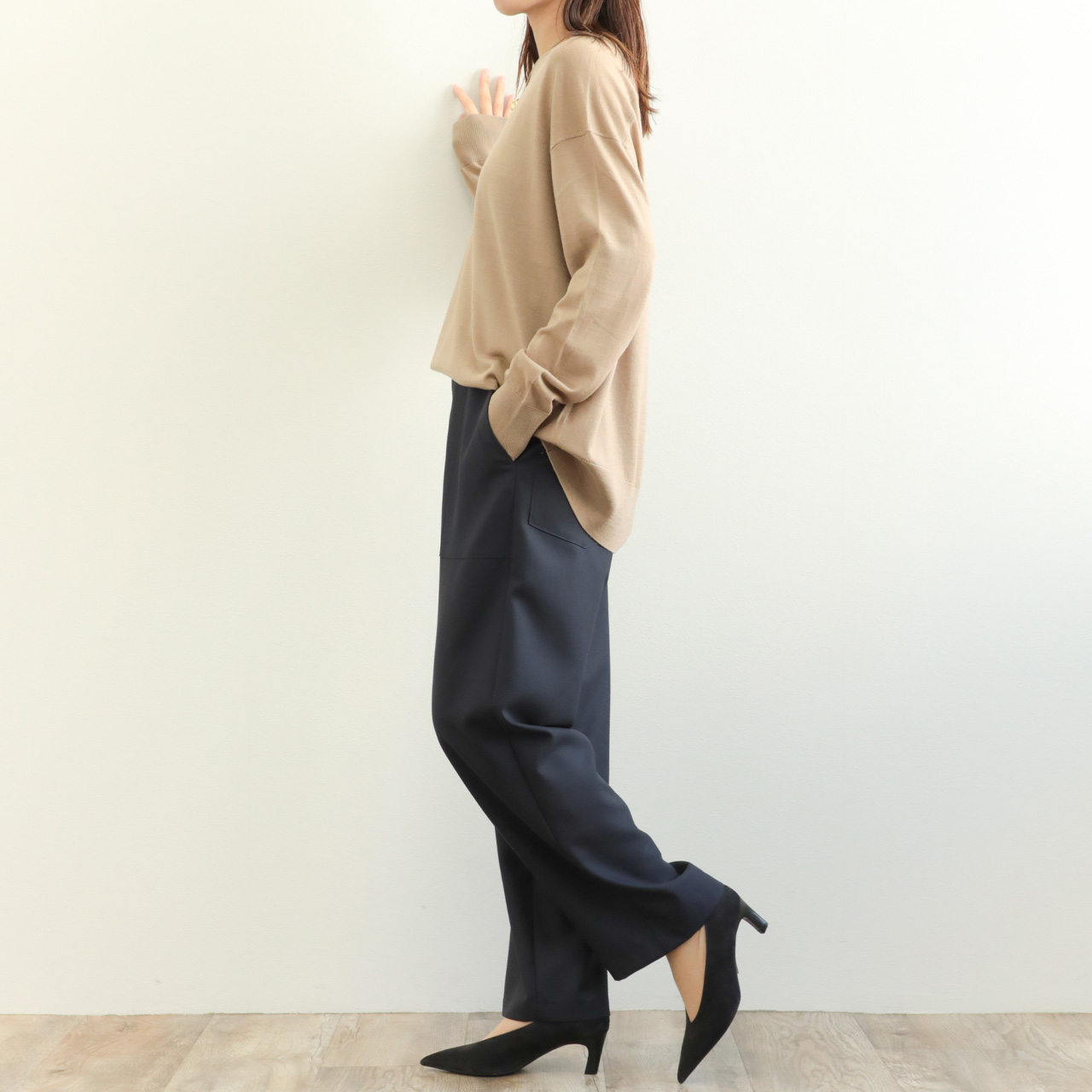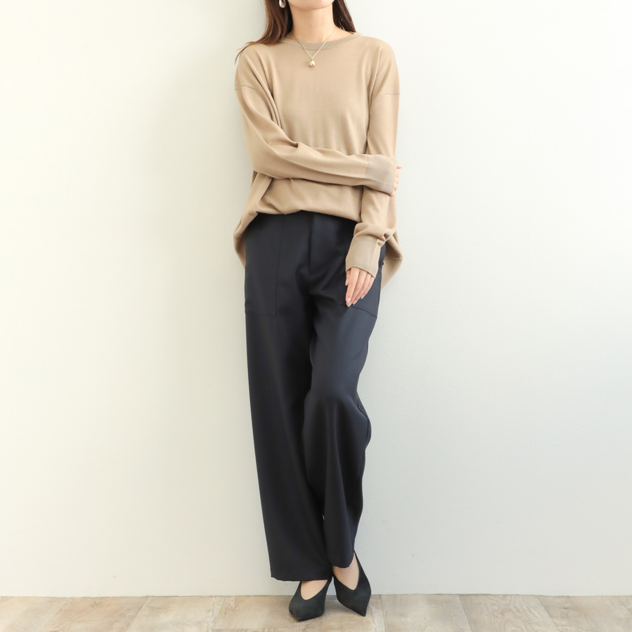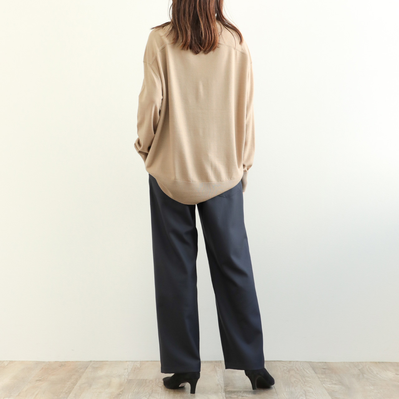 デザイナーの渡邊智香氏が送り出す魔法のような一着。長く愛されるバックフレアデザイン、その理由を是非このニットでご体感ください。