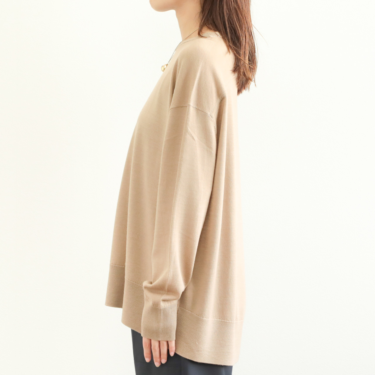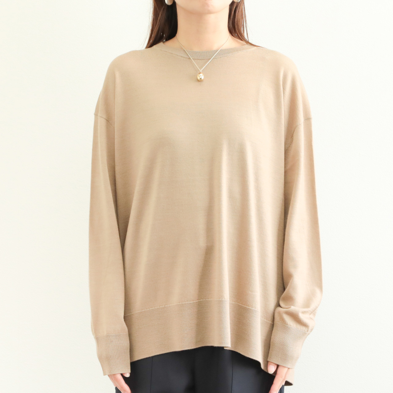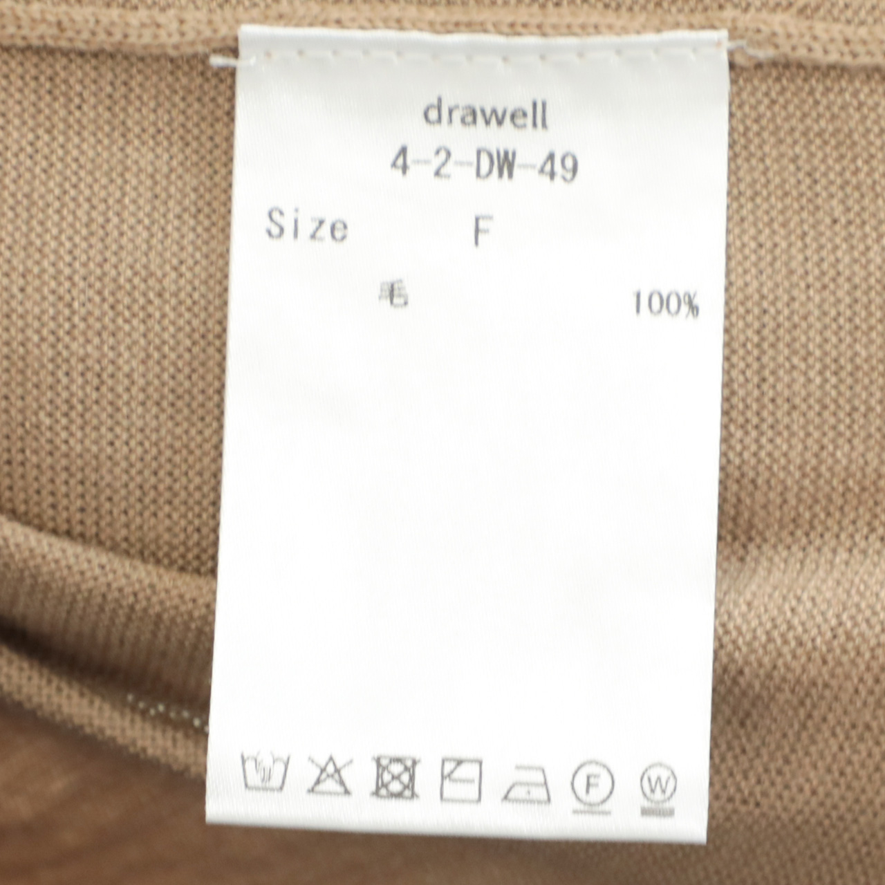 drawell ドロウェル ニット 丸首 クルーネック 長袖 バックフレア ウール 16ゲージ ハイゲージ 4-2-DW-49 キャメル