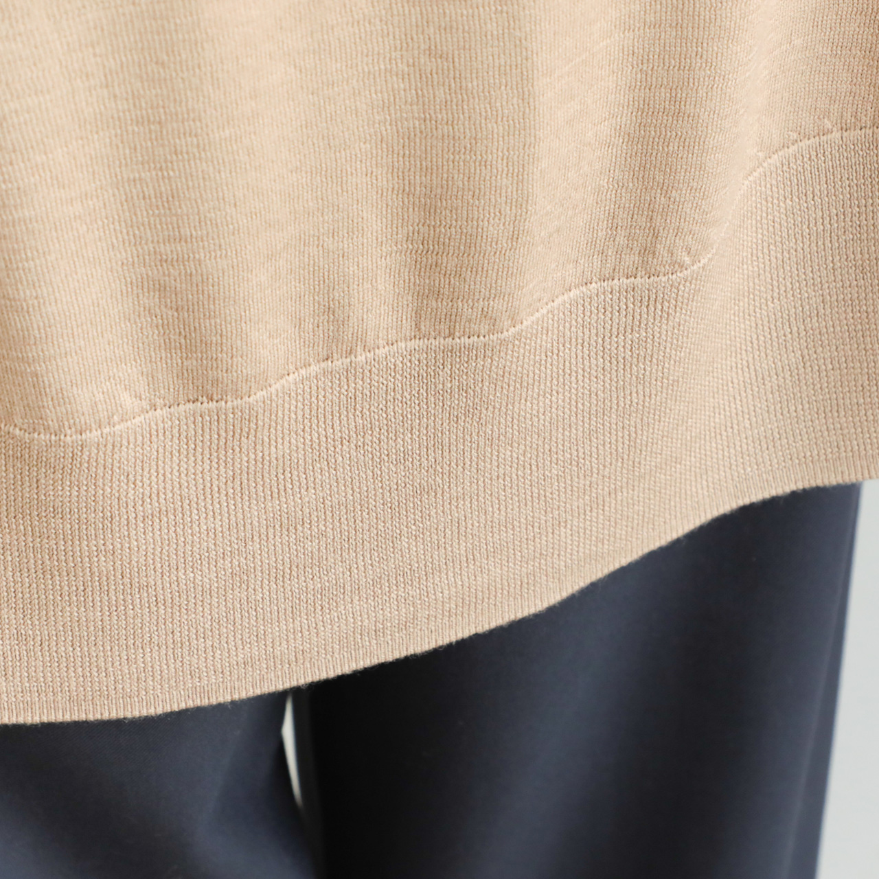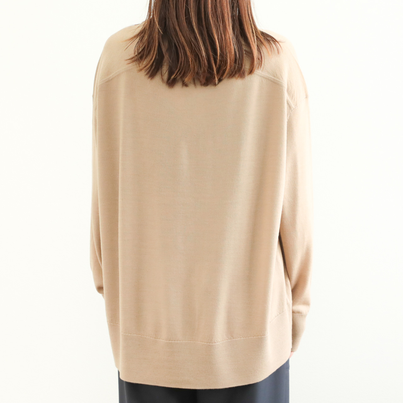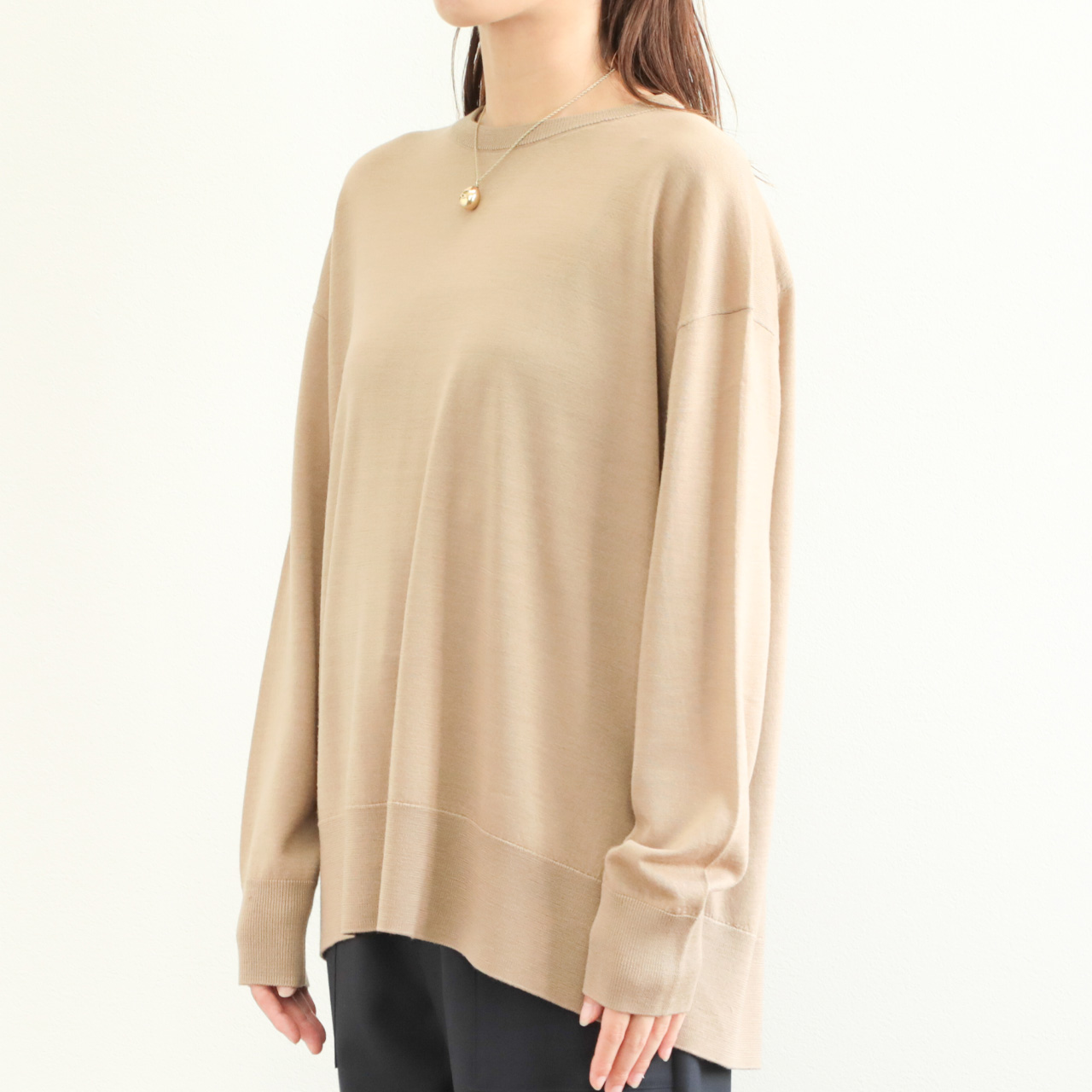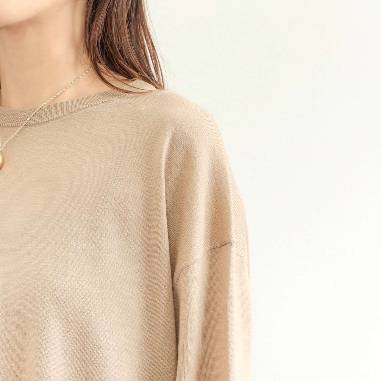 drawell ドロウェル ニット 丸首 クルーネック 長袖 バックフレア ウール 16ゲージ ハイゲージ 4-2-DW-49 キャメル
