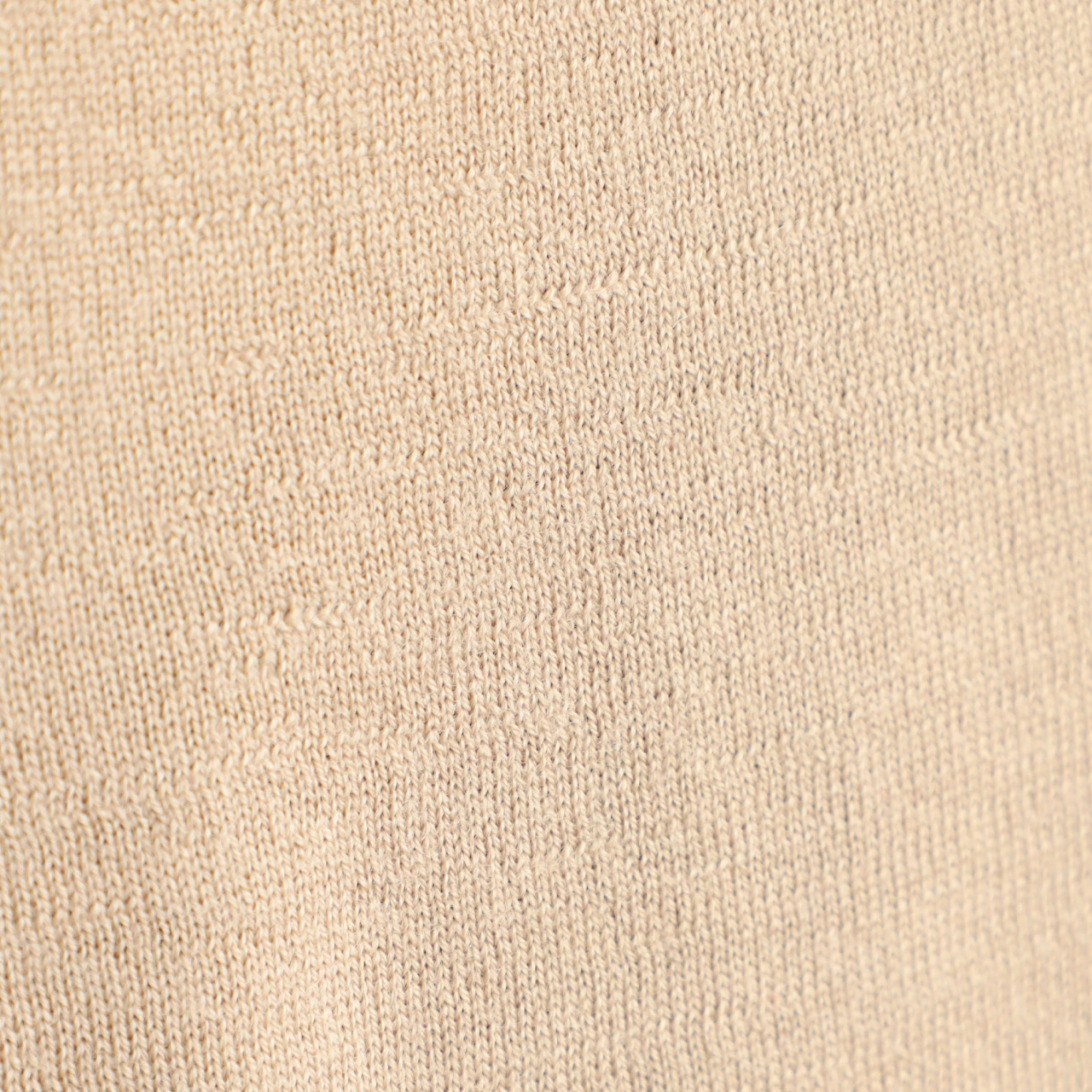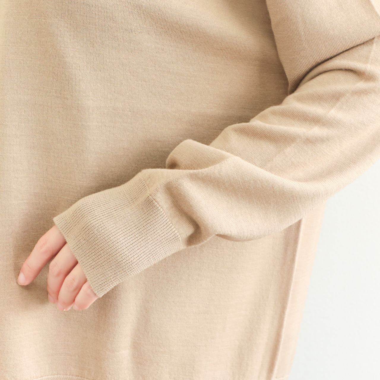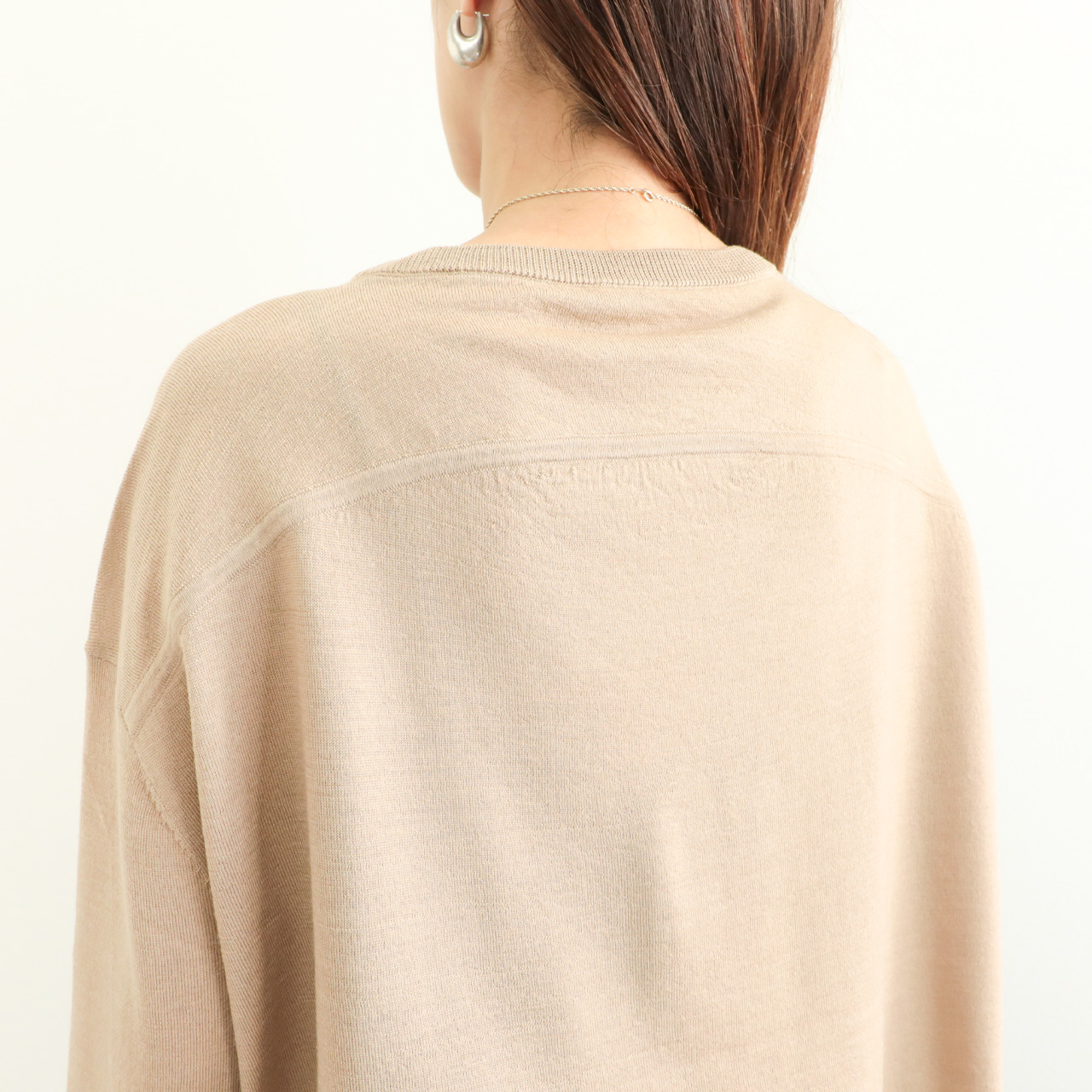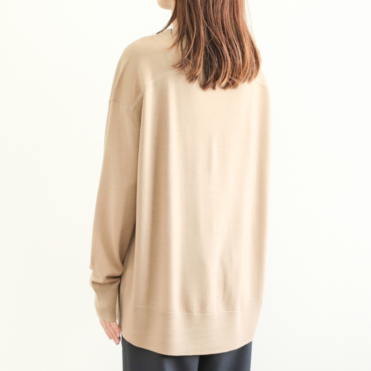 素材はウール100%。ソフトで滑らか、そして程よい艶が感じられるウールを16ゲージで編み上げることで非常に品のある表情に仕上げています。