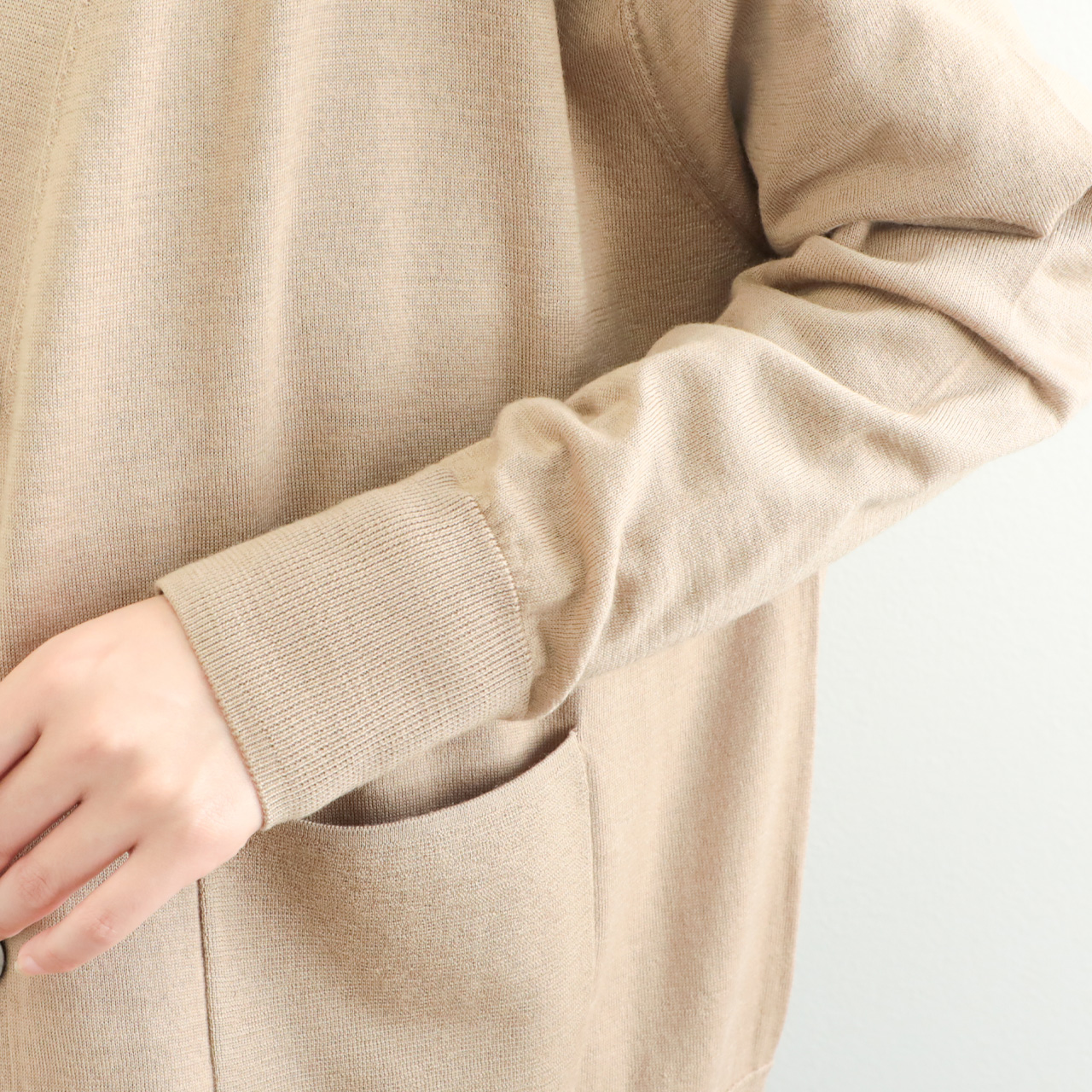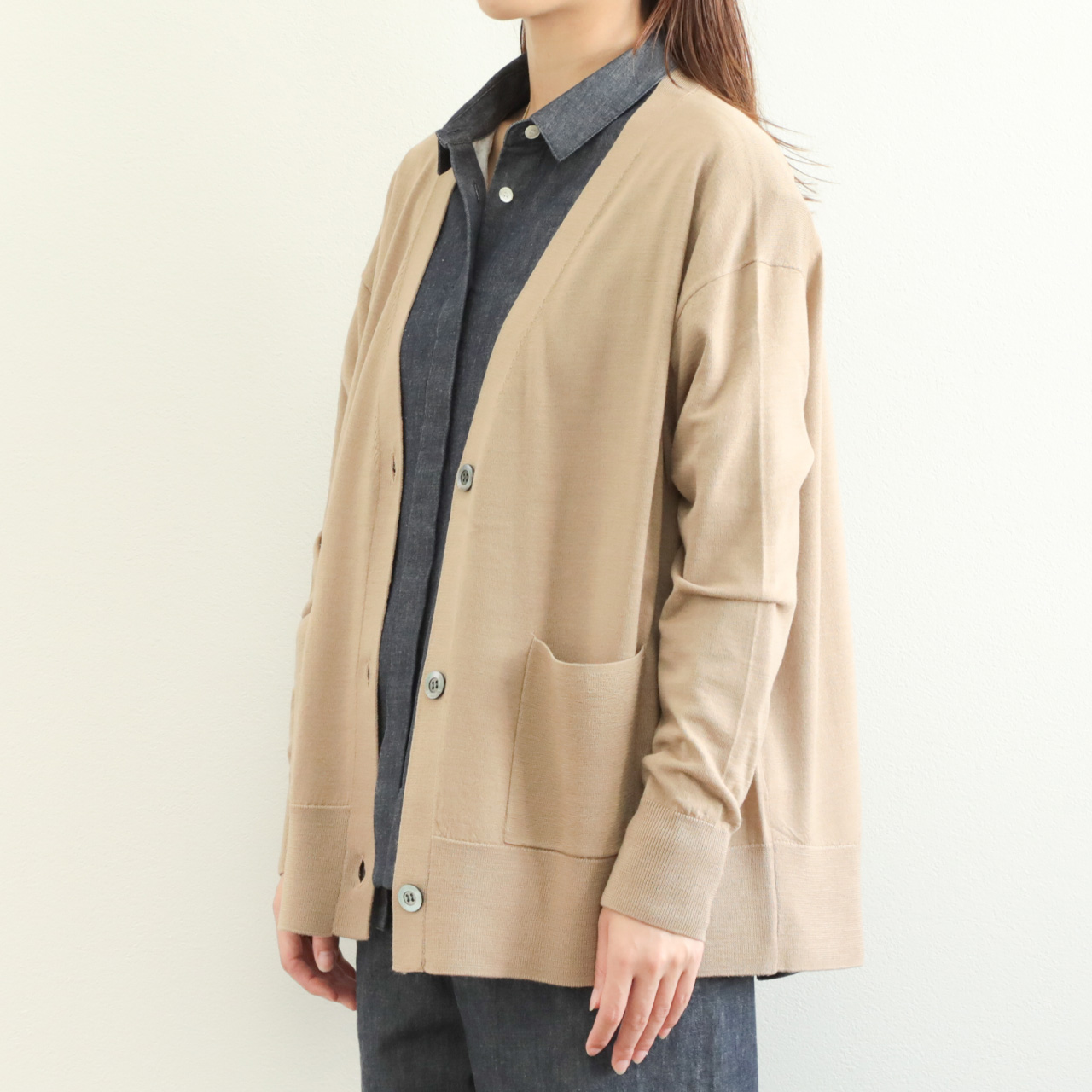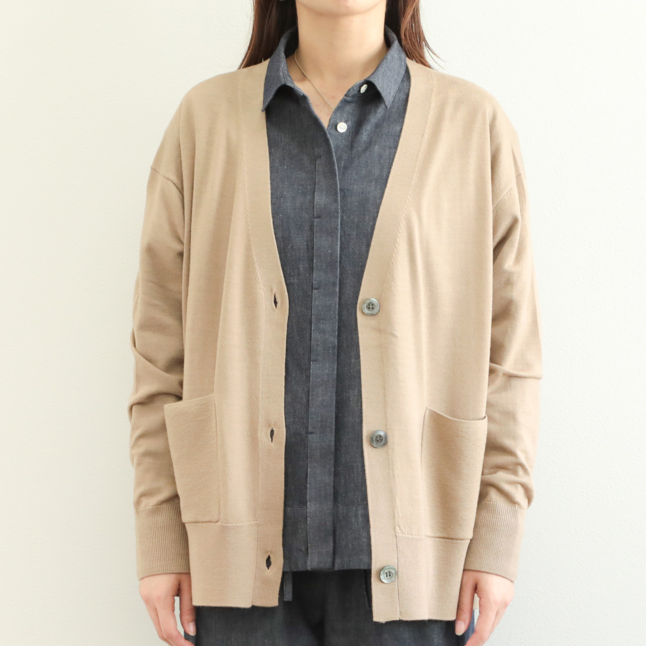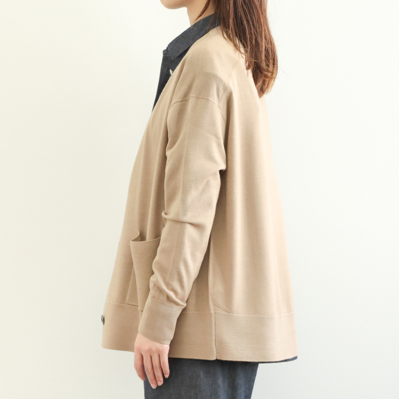 drawell ドロウェル カーディガン Vネック ニット バックフレア ウール 16ゲージ ハイゲージ 4-2-DW-48 キャメル