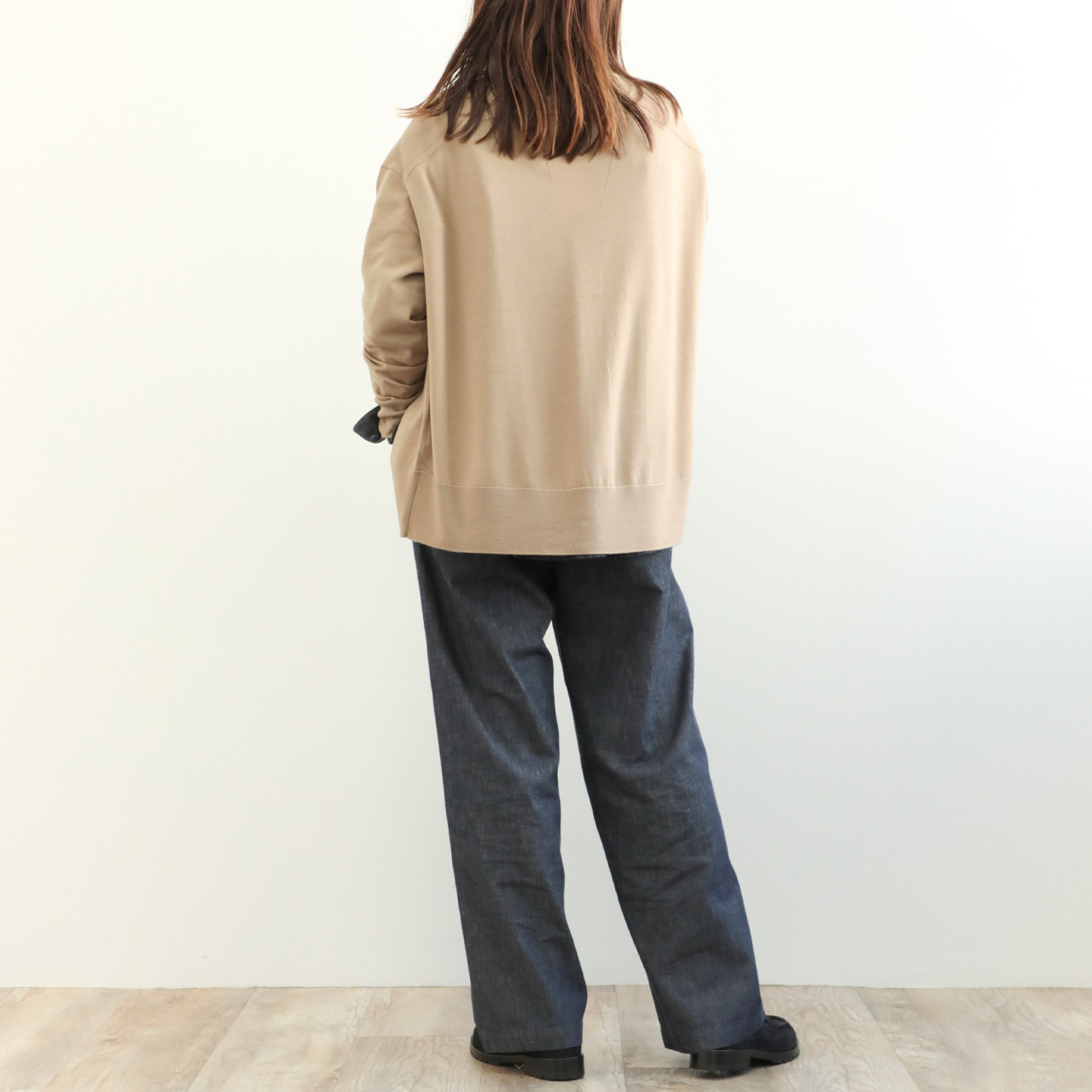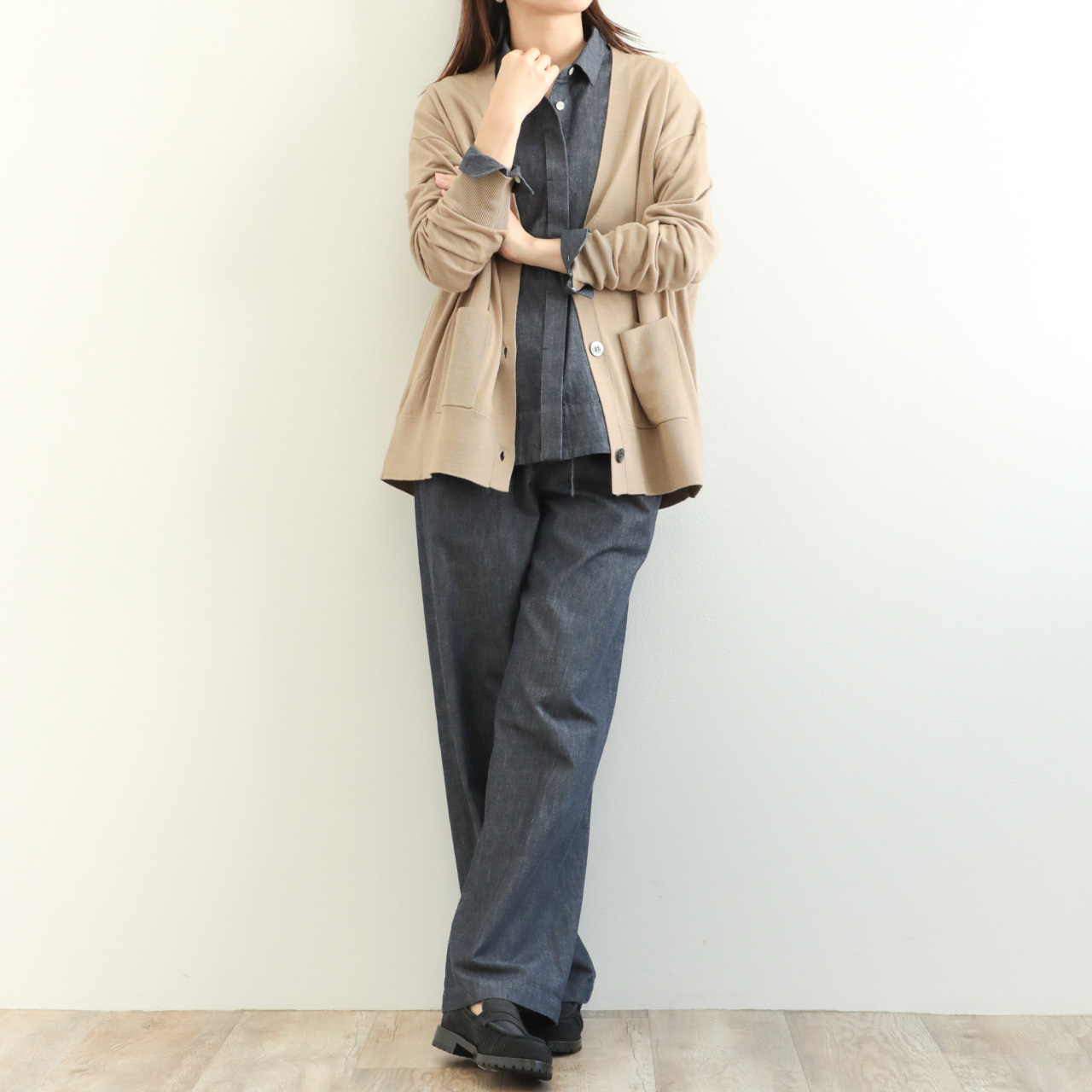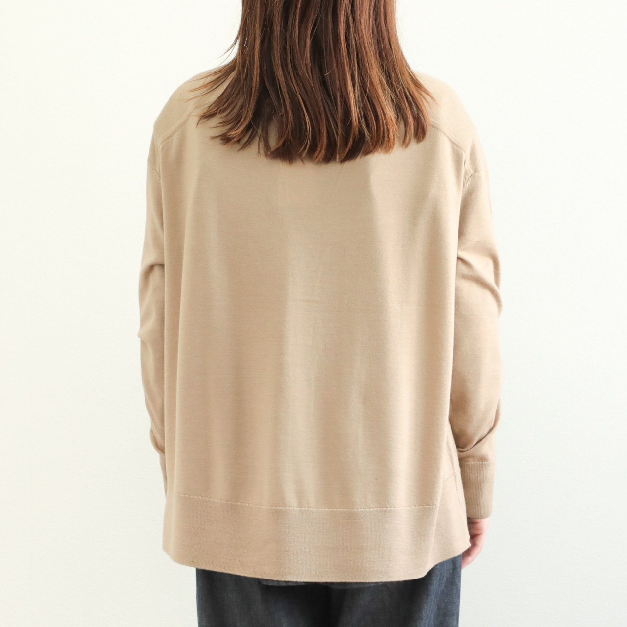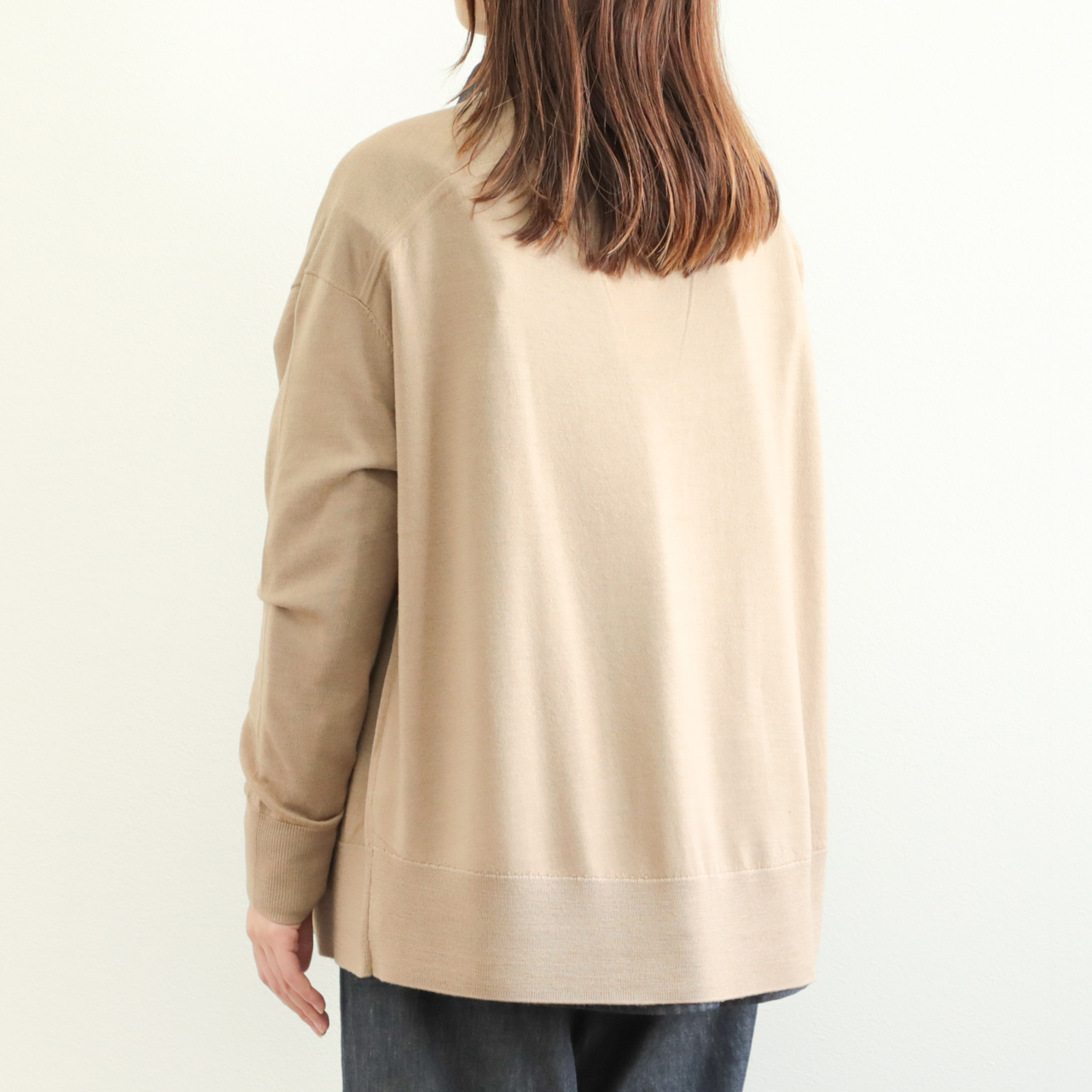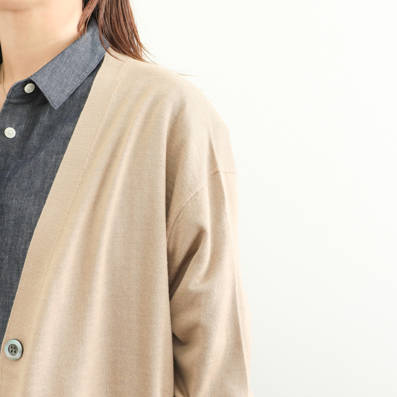 drawell ドロウェル カーディガン Vネック ニット バックフレア ウール 16ゲージ ハイゲージ 4-2-DW-48 キャメル