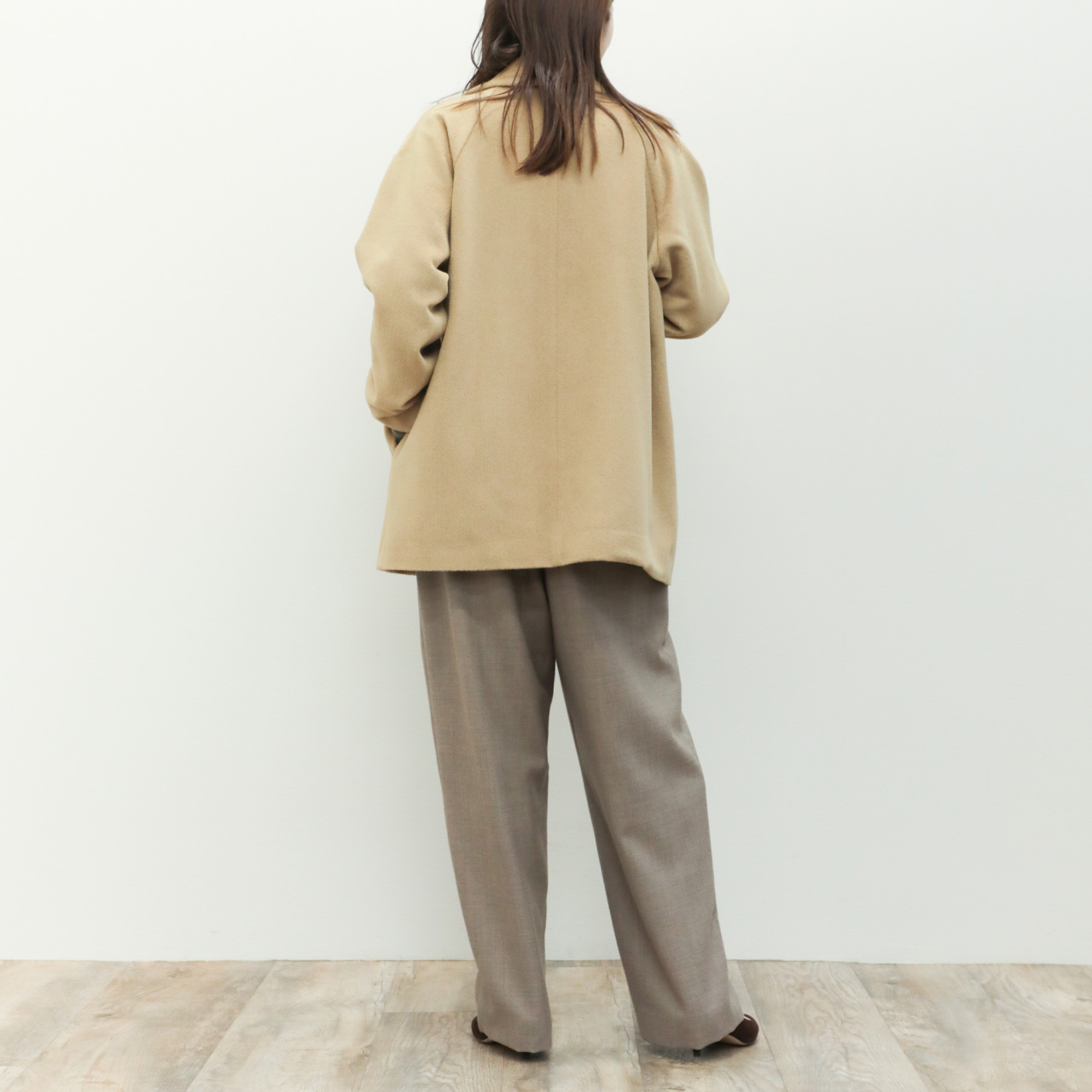 ボトムスはタイトからワイドまで幅広く合わせていただける万能なシルエット。開けても閉めても美しいシルエットで使用頻度の高い一着となること間違いなしです!