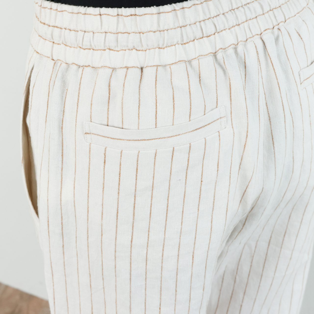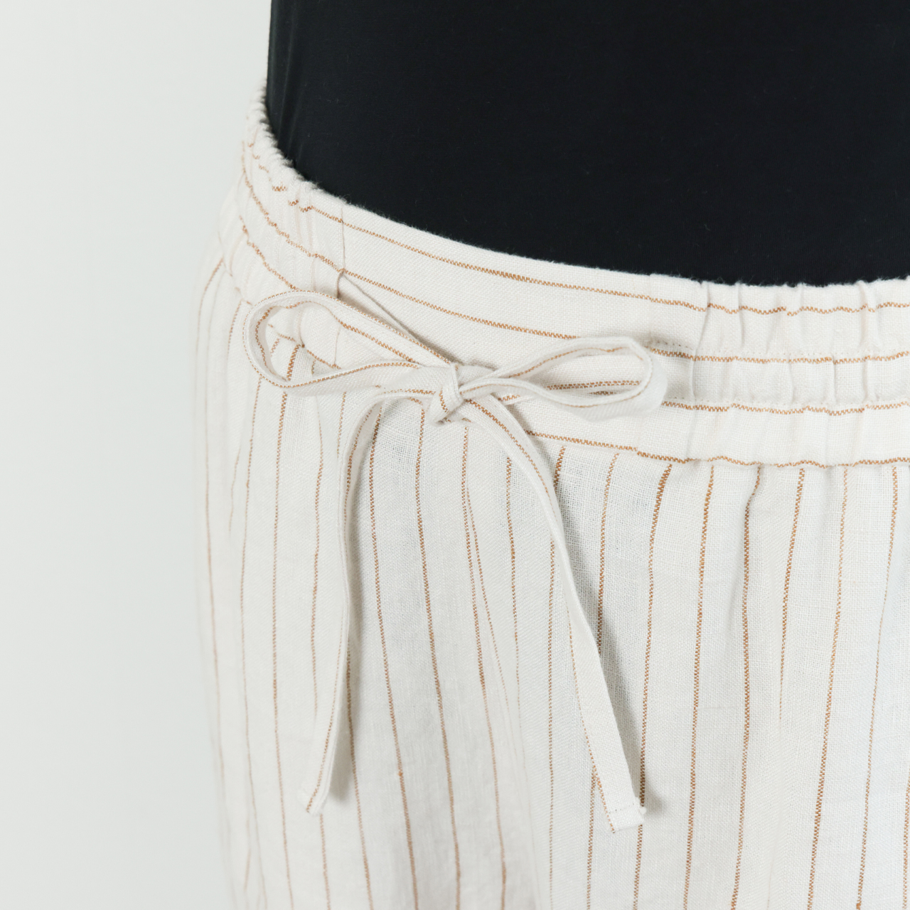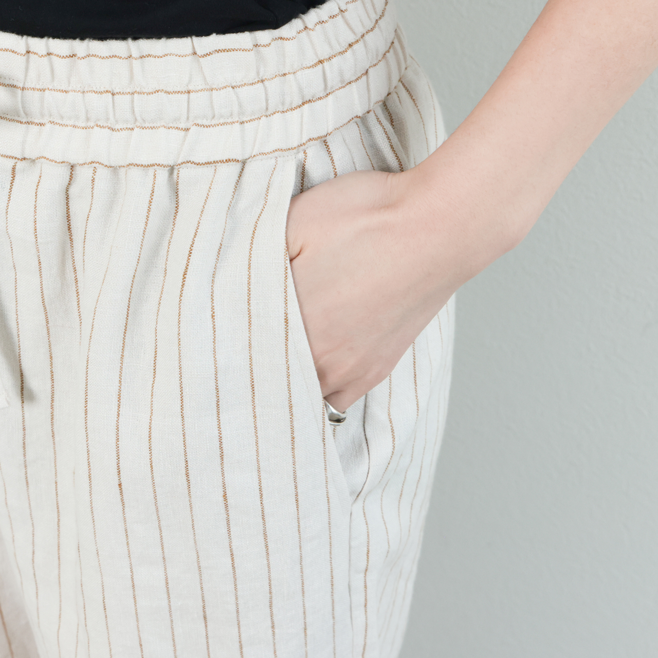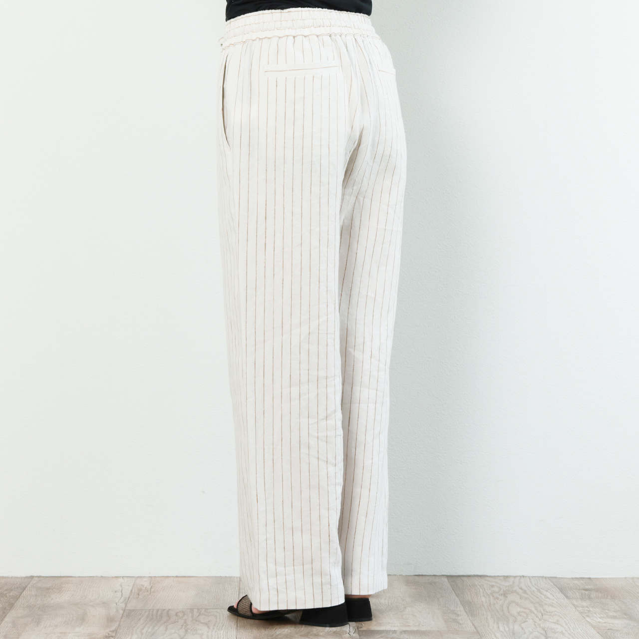 drawell ドロウェル パンツ ワイド ドローストリング ウエストゴム リネン ストライプ ヘリンボーン 5-1-DW-2 ストライプアイボリー