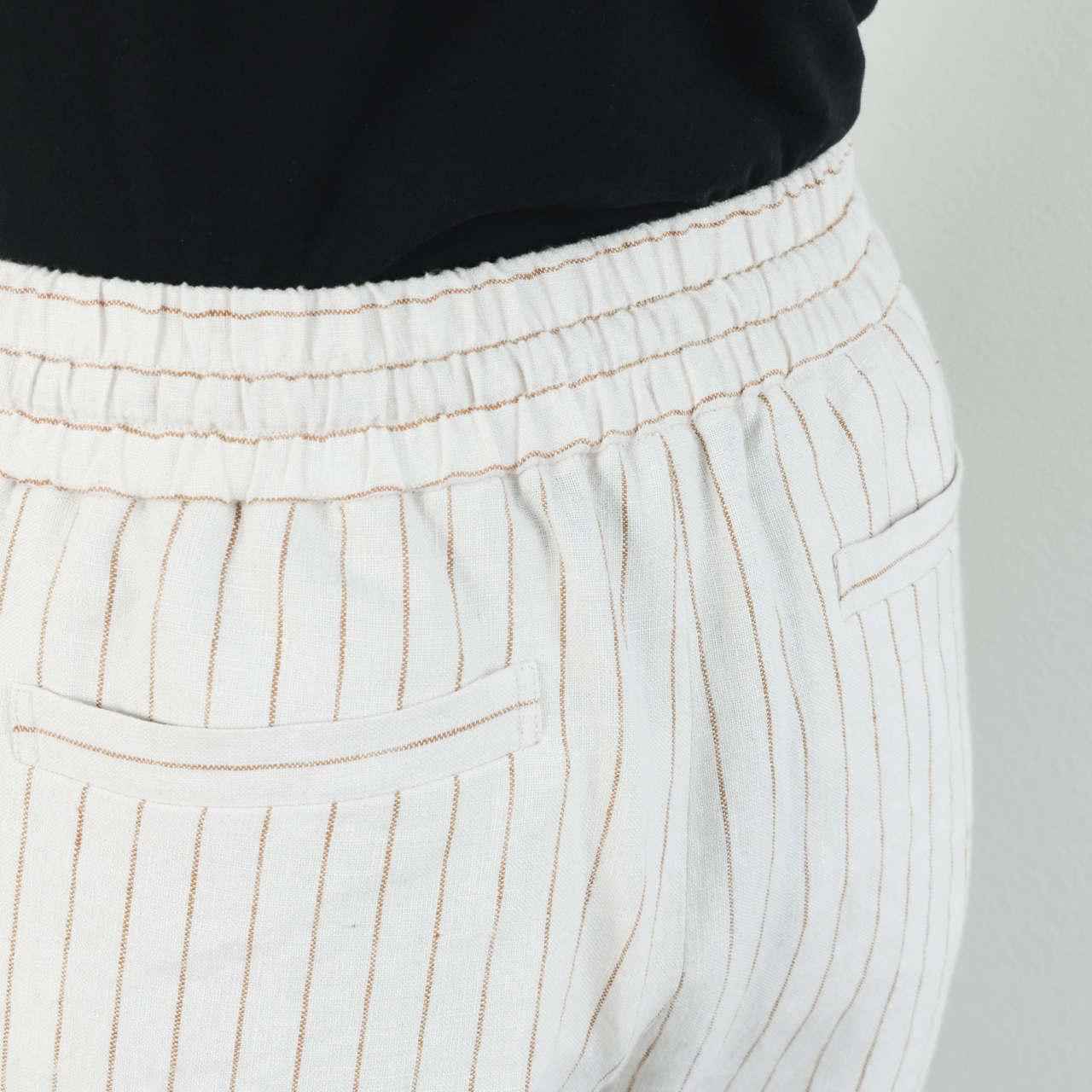 ウエストはゴムで体にフィットする作りになっており、ドローストリングで調節が可能。