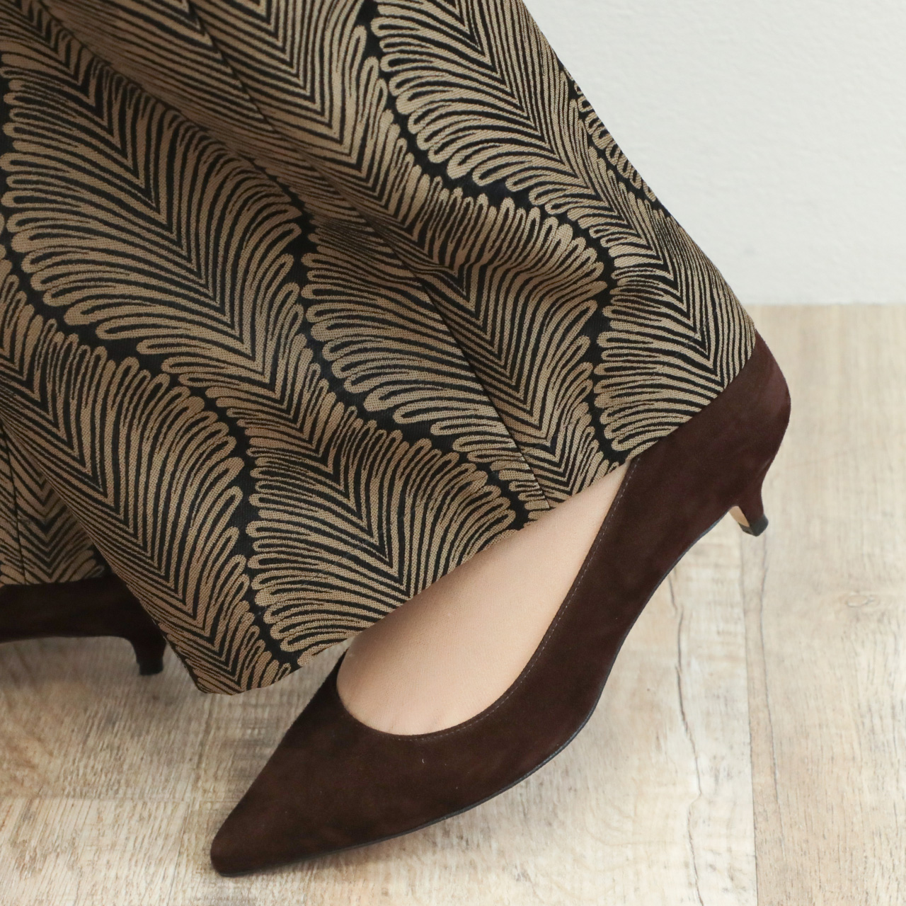 オリジナルのリーフ柄はスタイリングに丁度いいアクセントを加えてくれますので、シンプル・シックになりがちなスタイルにピッタリ。