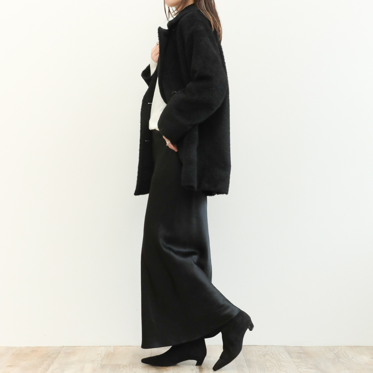 ボトムスはタイトからワイドまで幅広く合わせていただける万能なシルエット。開けても閉めても美しいシルエットで使用頻度の高い一着となること間違いなしです!