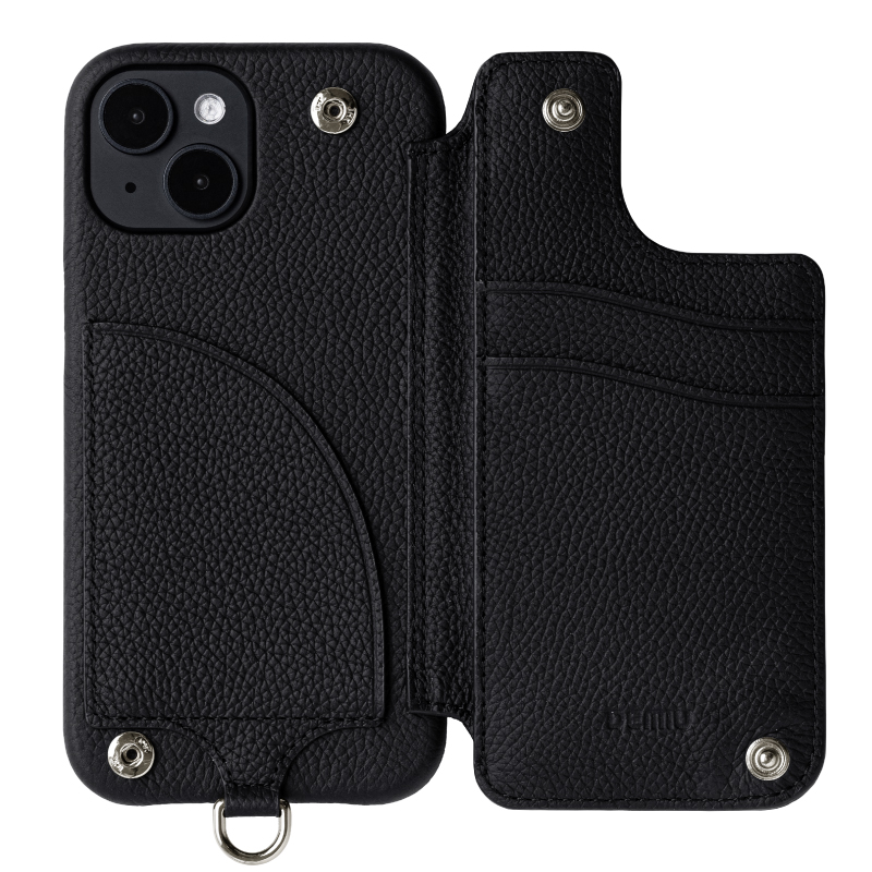 DEMIU デミュウ GRACE グレイス スマホカバー スマホケース 牛革 カード入れ 背面 手帳型 iPhone15 Pro iPhone16 iPhone17 Pro Max ブラック