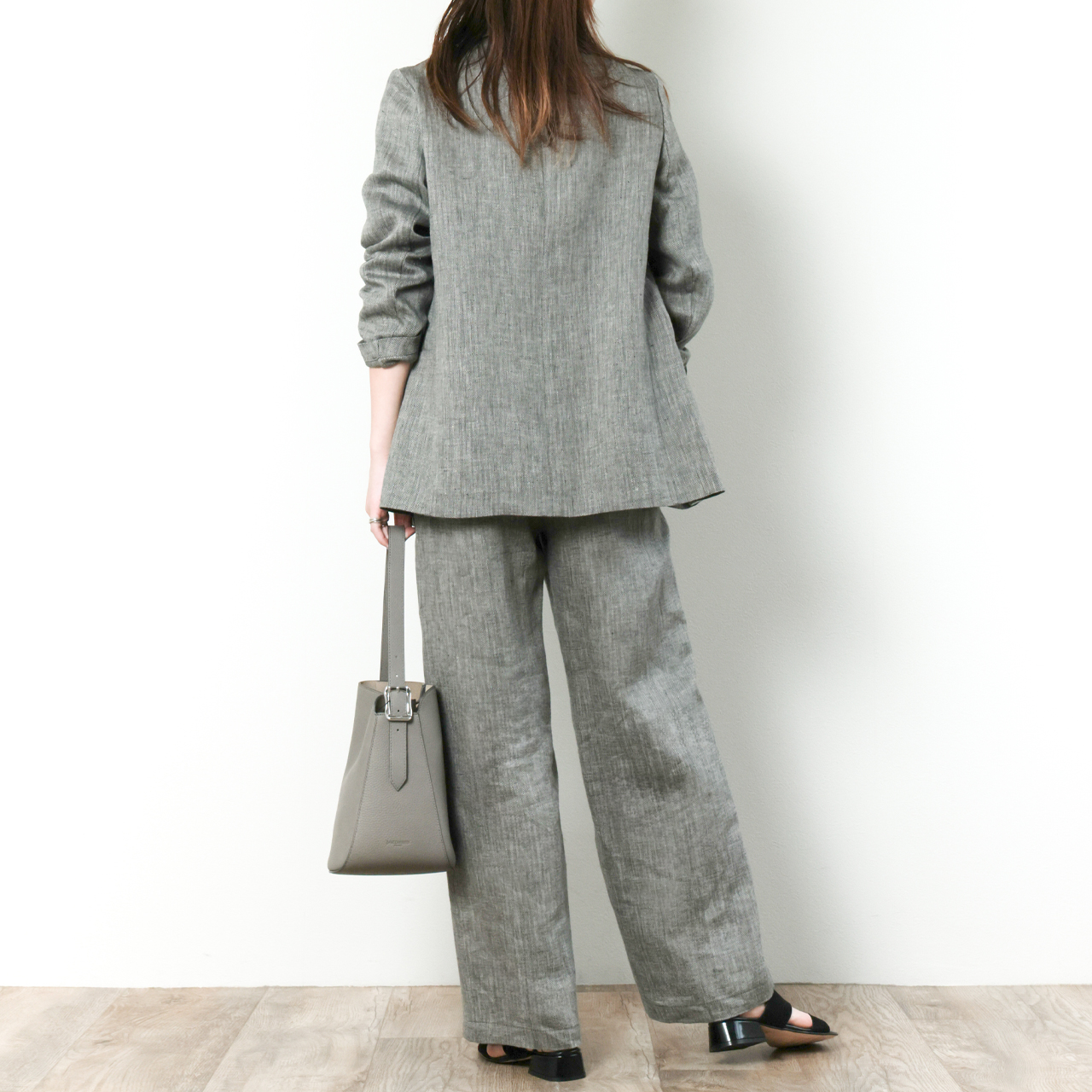 軽く穿ける上に、通気性も高い生地ですので気温が上がってきても快適にご着用いただける一着となっております。麻素材と言えば”シワ”も魅力。