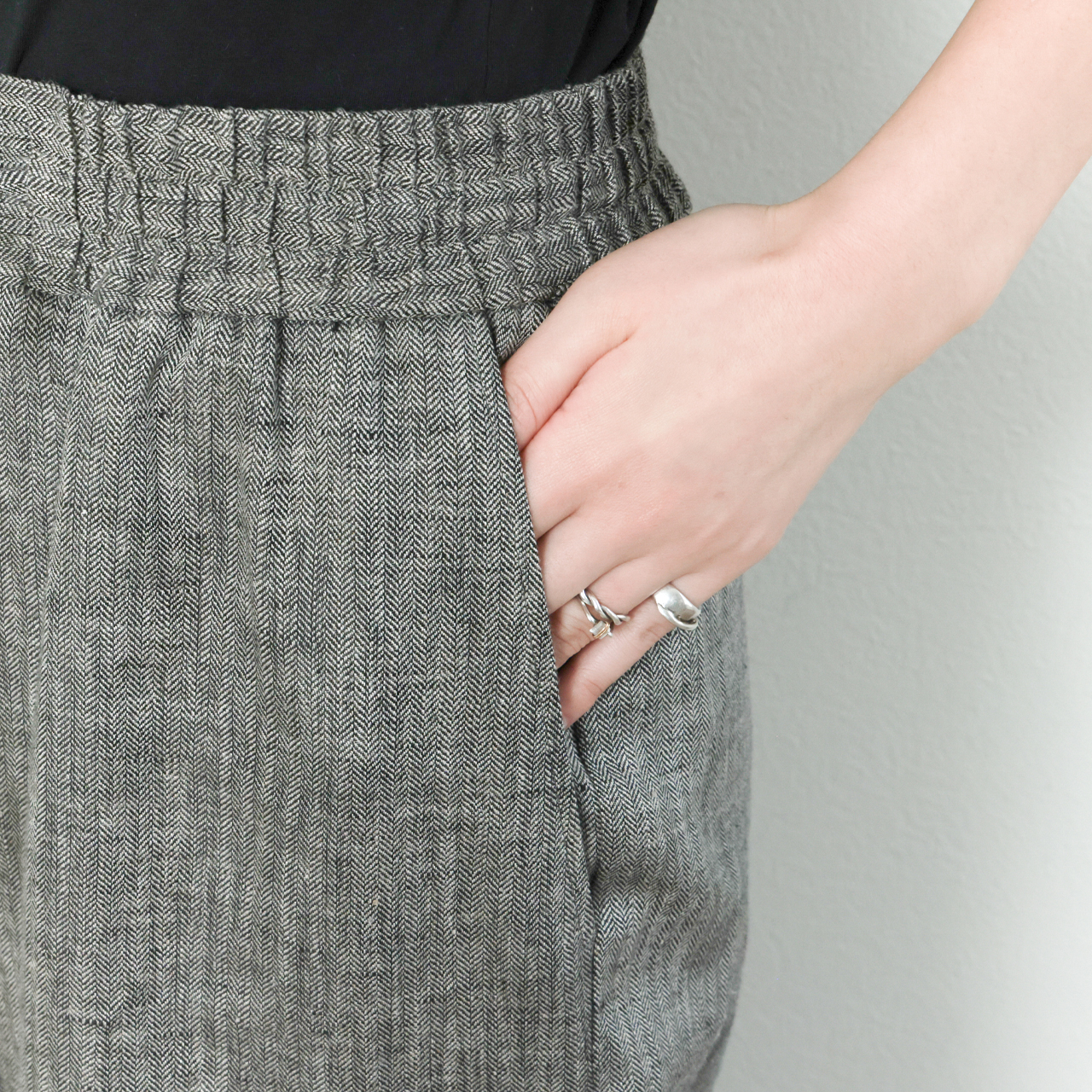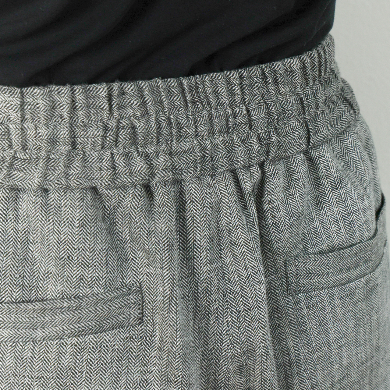 ウエストはゴムで体にフィットする作りになっており、ドローストリングで調節が可能。
