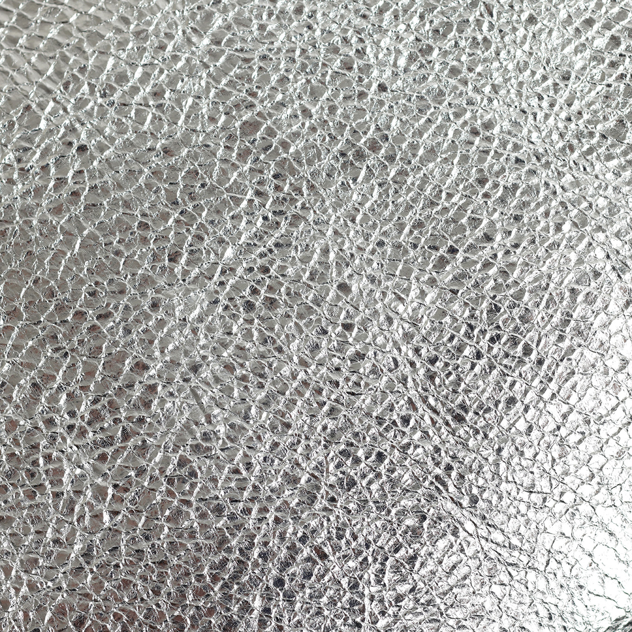 ソフトで軽量、細かなシボの表情のレザーに対してゴールド、シルバーのメタリックカラーを載せることでキラキラと反射し、存在感抜群。