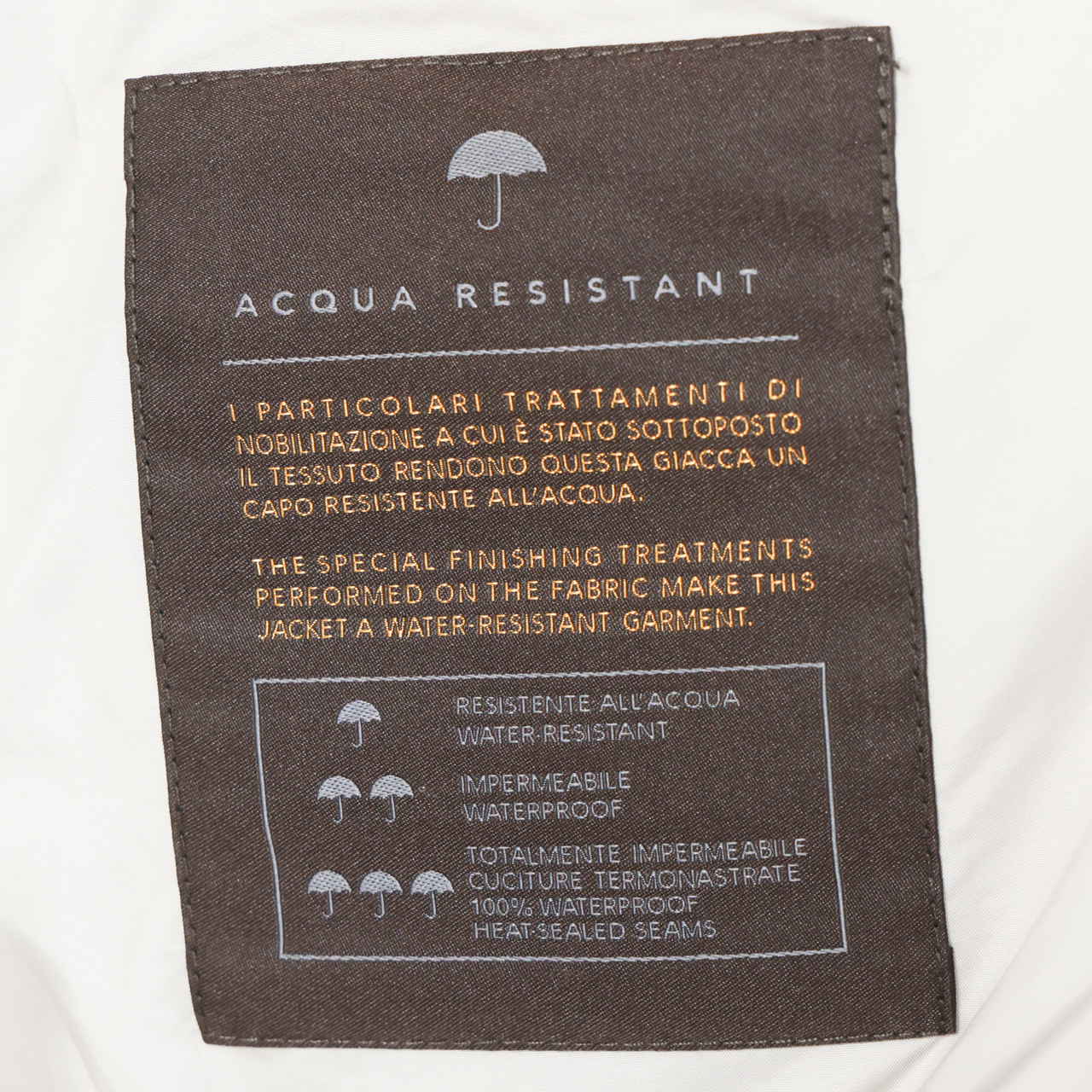 ネームが刻印されたオリジナルのジップ、釦やドローコードなど細かなところまで拘りつくし、他の追随を許さない品のある一着。