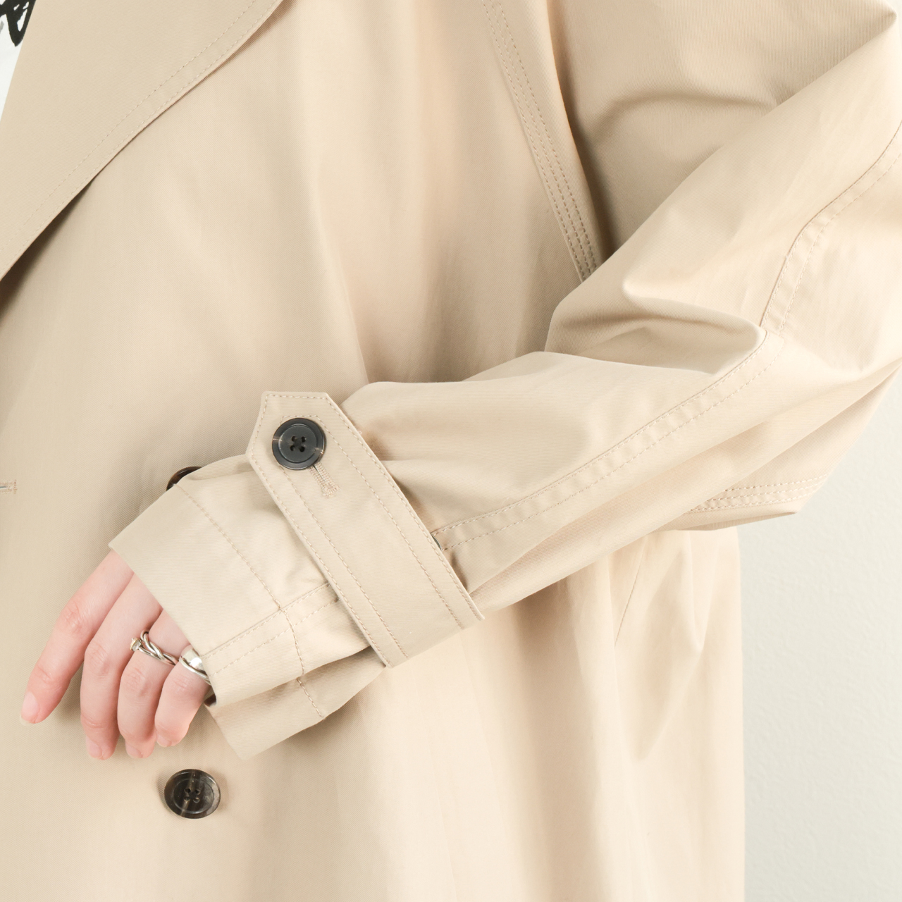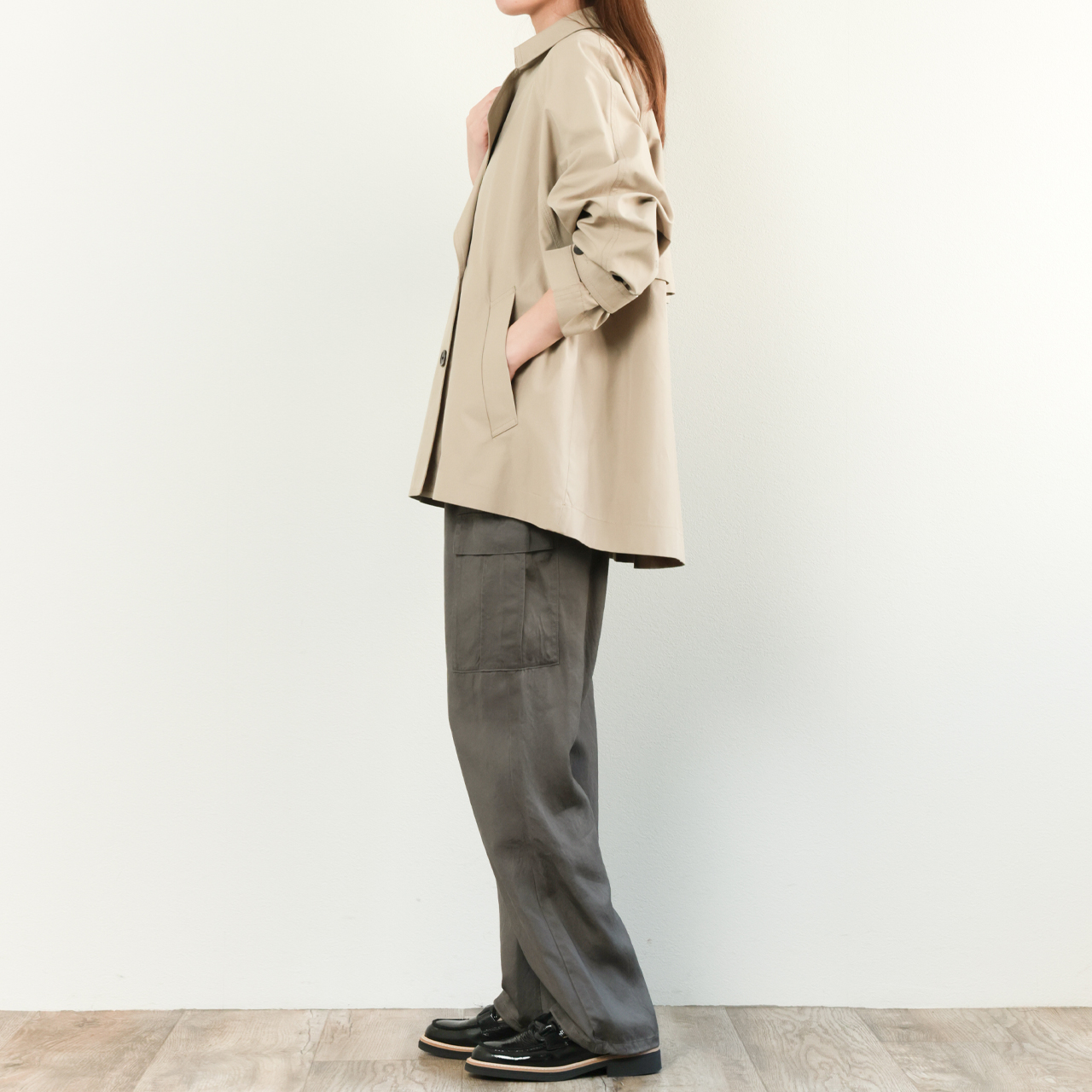 定番デザインの一着も、丈とディテールを変えるだけで新鮮な一着に。いつものスタイリングのプラスワンとしてこのコートはいかがでしょうか。