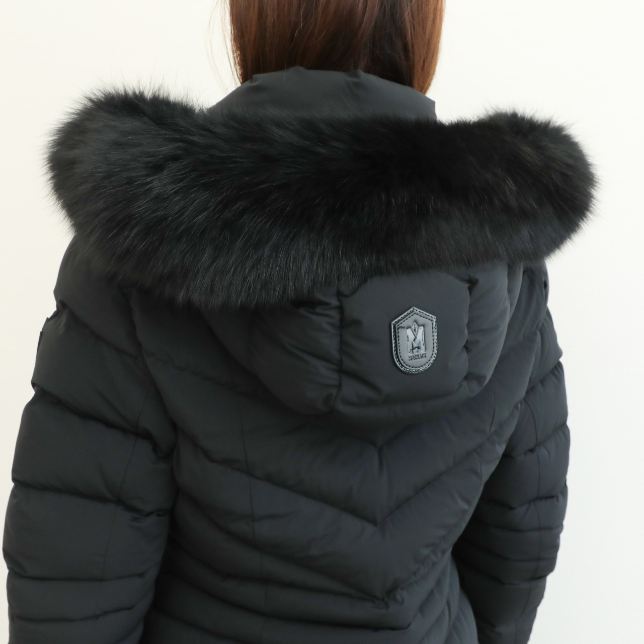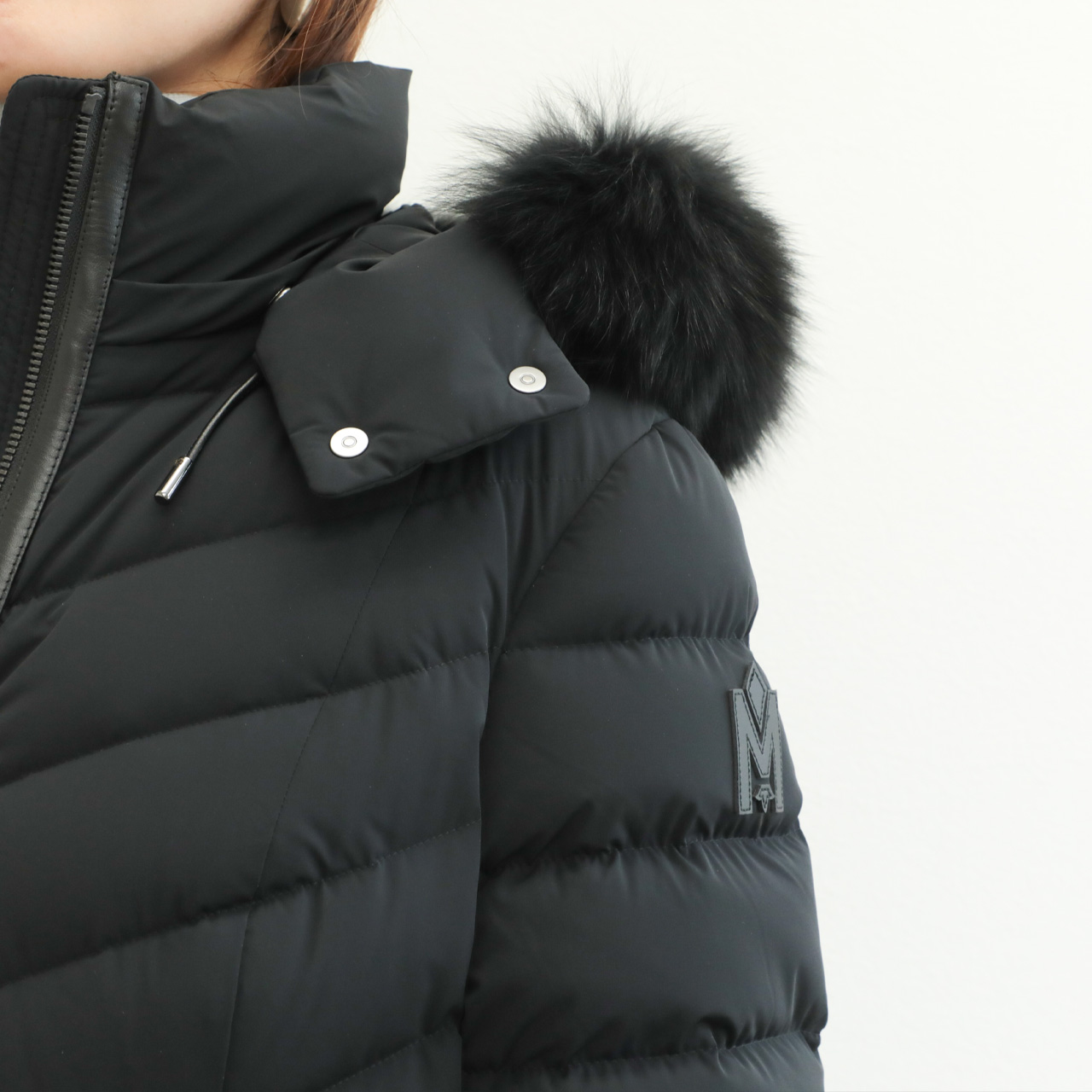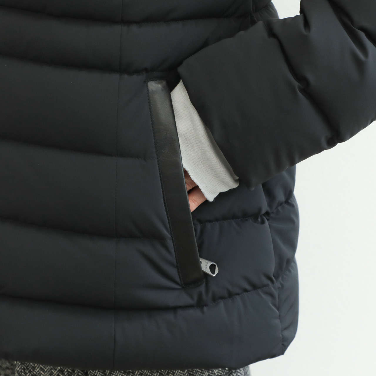 ボディはストレッチナイロンを使用。光沢を抑えたマットな質感でカジュアルさを抑えた上品な雰囲気に仕上げられております。脇ポケット、フロントジップの脇部分は牛革を使用し、フード部分にはボリュームと自然な艶が魅力のフォックスファーを使用。これにより非常にラグジュアリーな一着に仕上がっております。