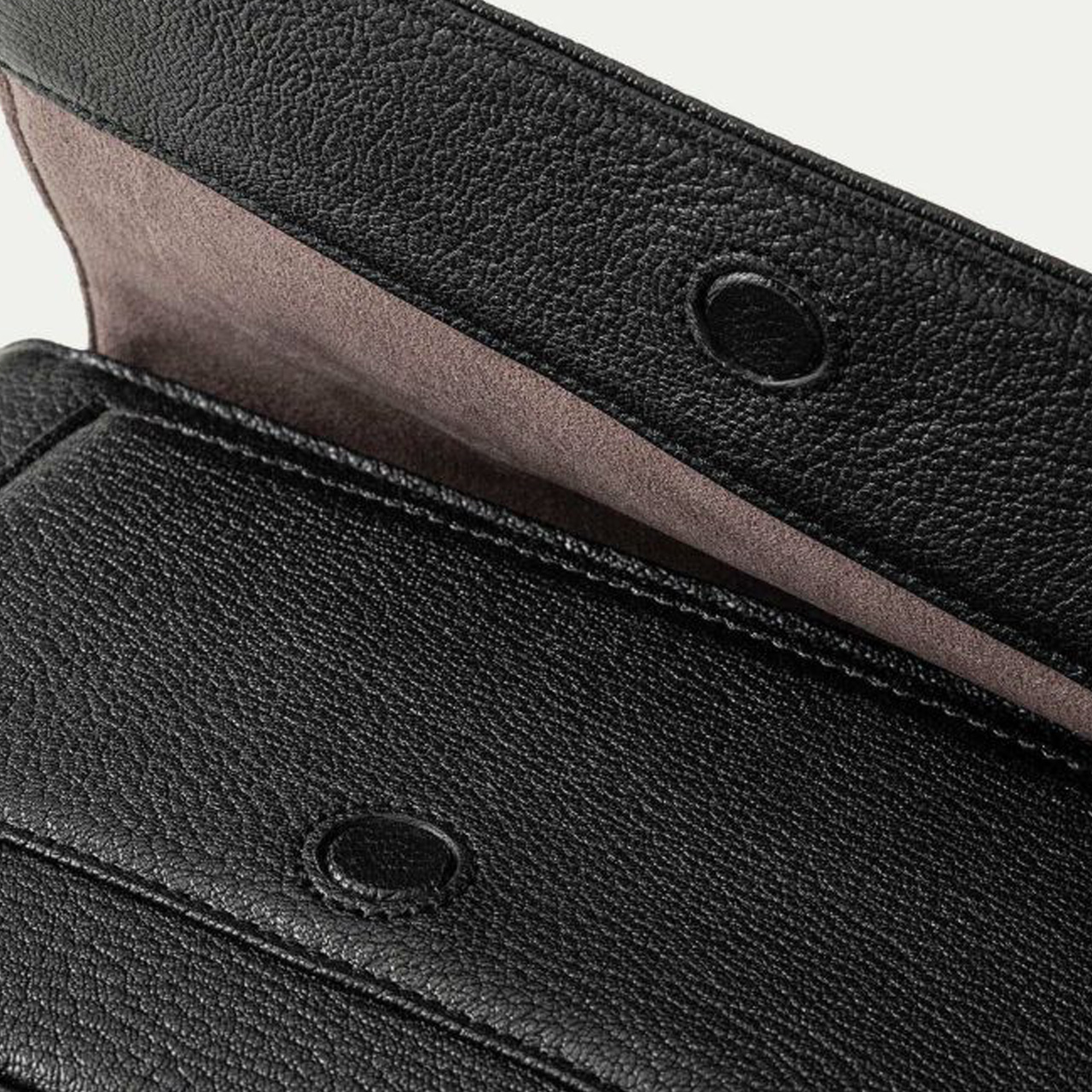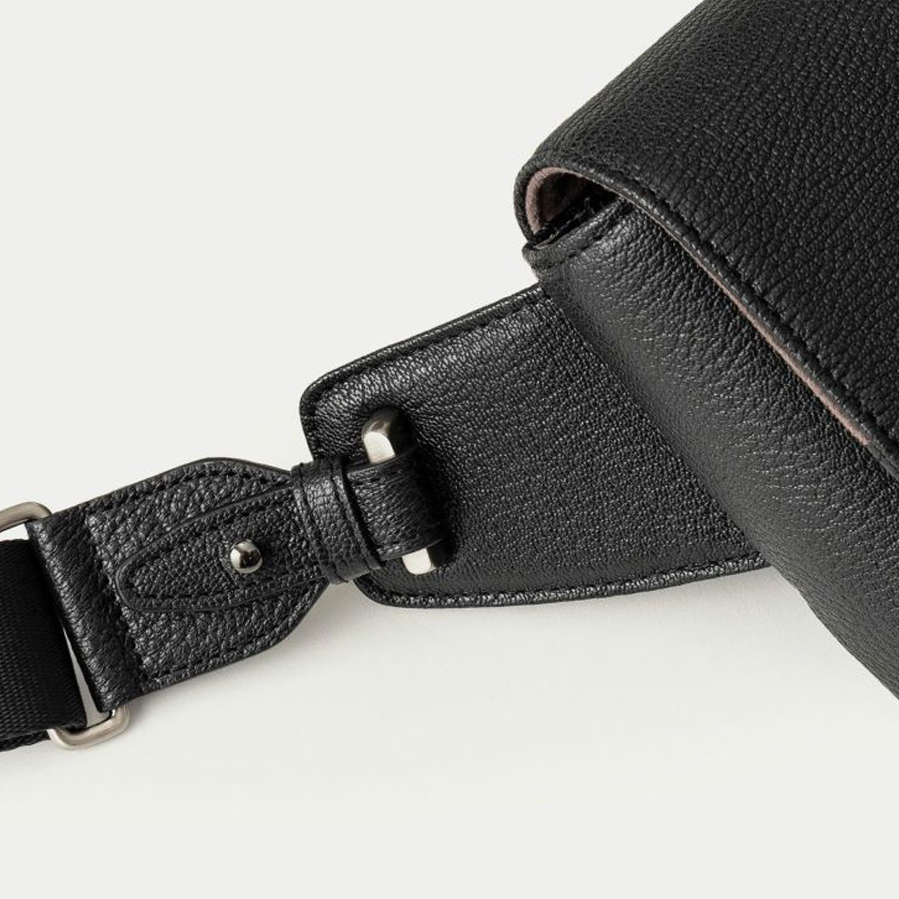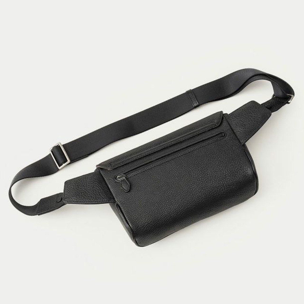 海外の有名メゾンでも愛用されている、フランス・ジュリアン社製のゴートレザー「シェーブル」を纏わせたボディは、前面とマチの間・背面と底面の間の繋ぎ目をなくすことで、装着時に体あたりが柔らかくなる機能性も実現。