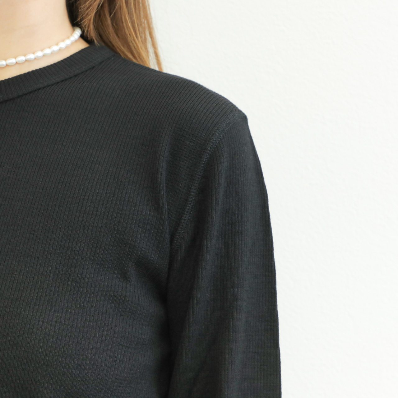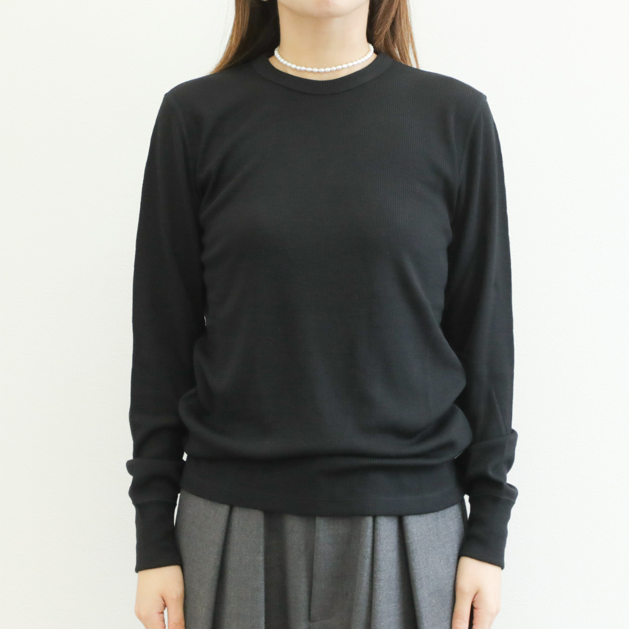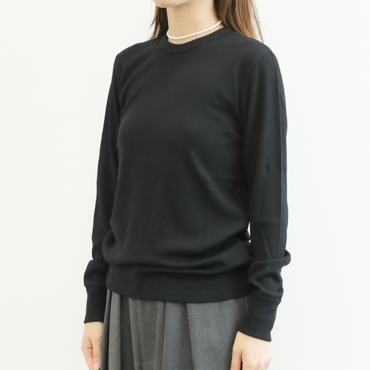 SACRA サクラ カットソー クルーネック ウール 無地 メリノウール 長袖 EX.FINE MERINO RIB JSY TOP 125552091 BLACK/ブラック