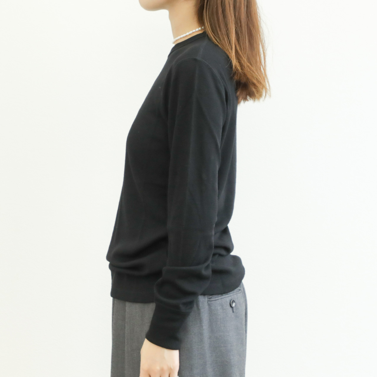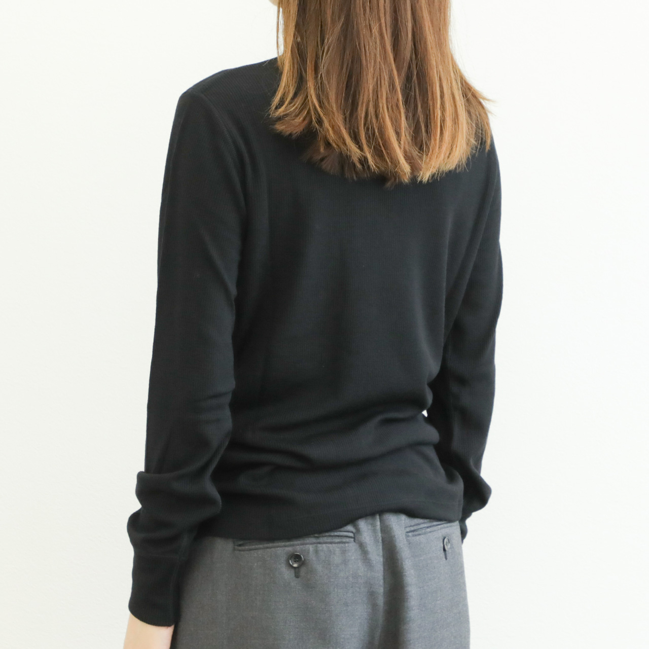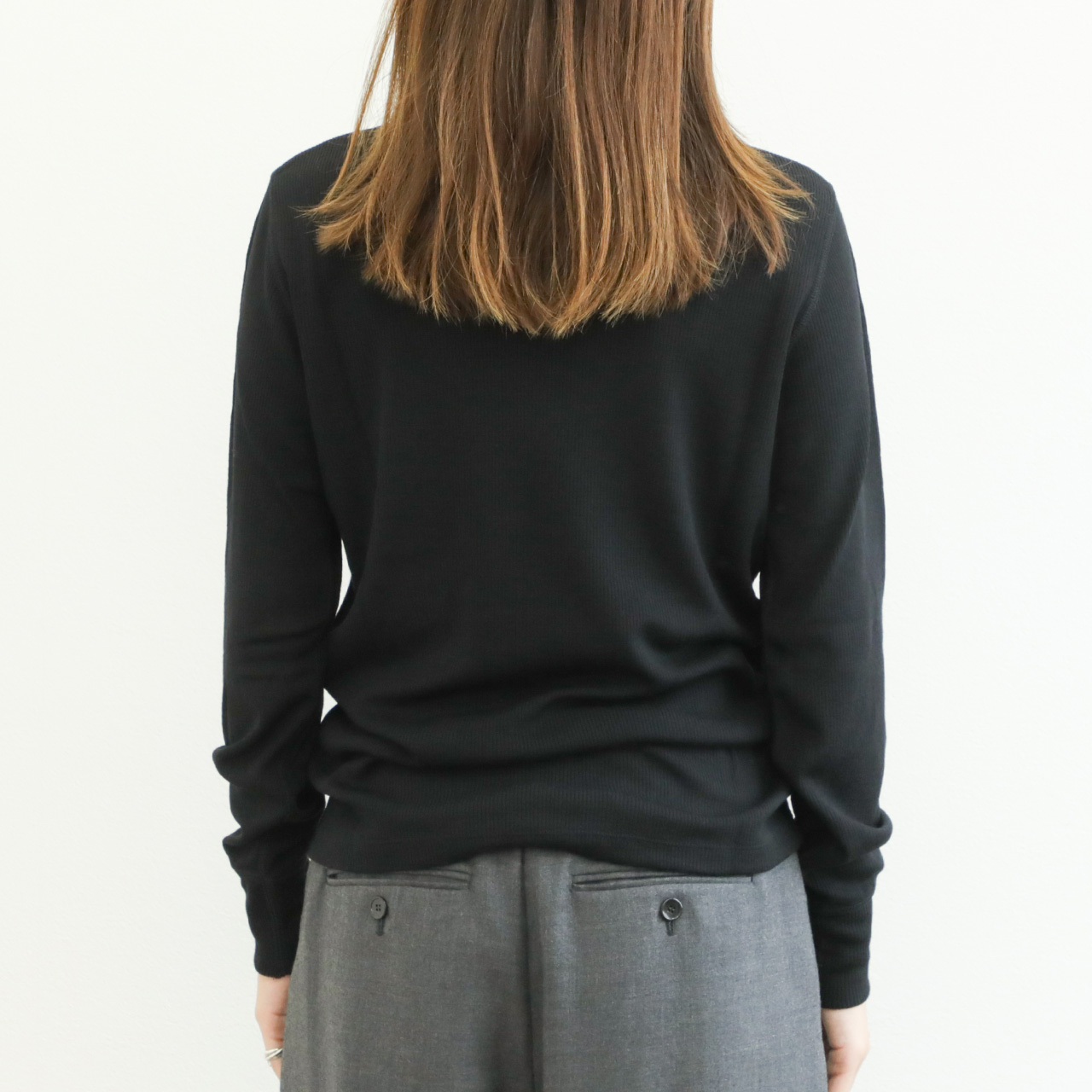 SACRA サクラ カットソー クルーネック ウール 無地 メリノウール 長袖 EX.FINE MERINO RIB JSY TOP 125552091 BLACK/ブラック