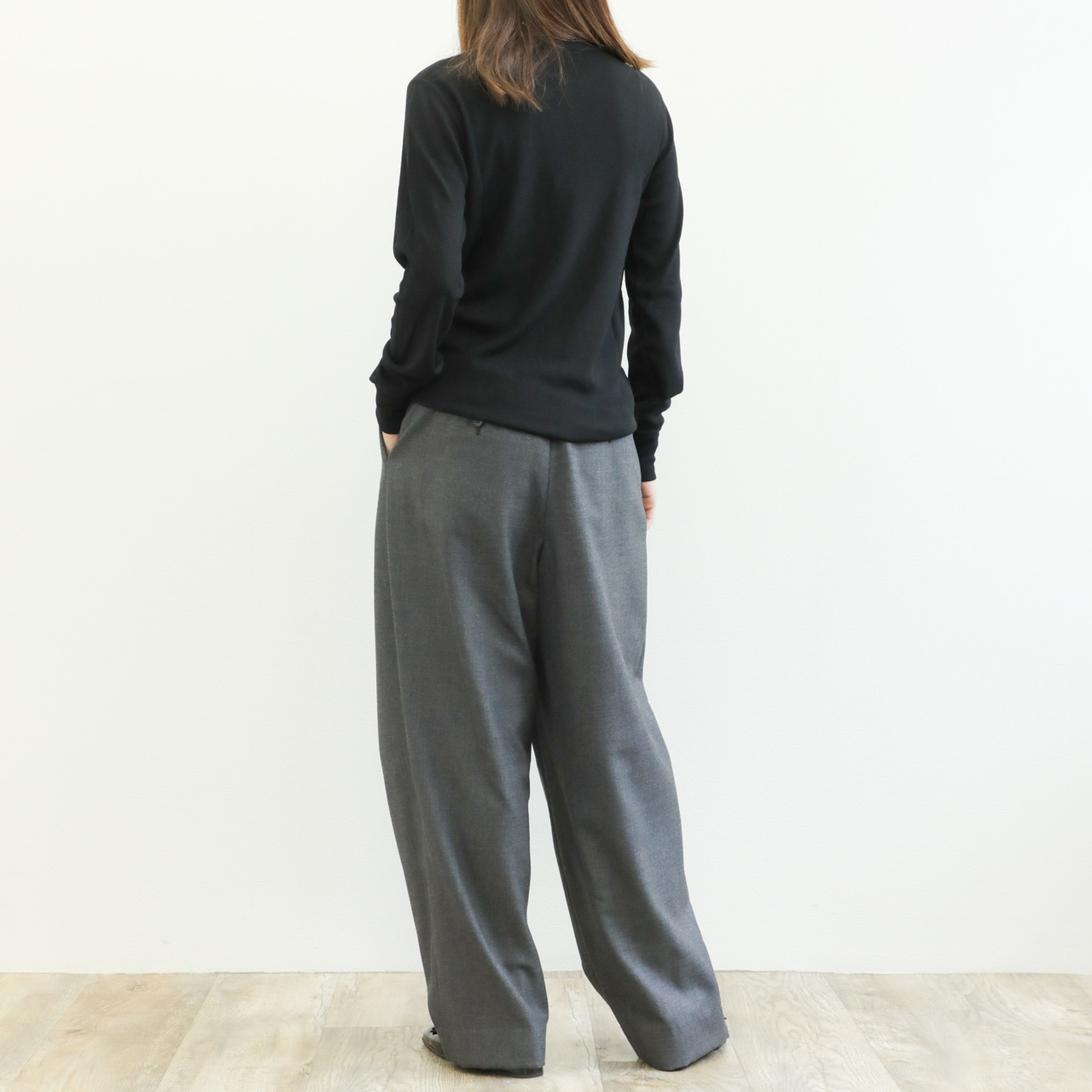 細番手のメリノウール素材を使用したカットソートップ。テレコ組織ならではの肉感と、柔らかく滑らかな肌触りが特徴です。