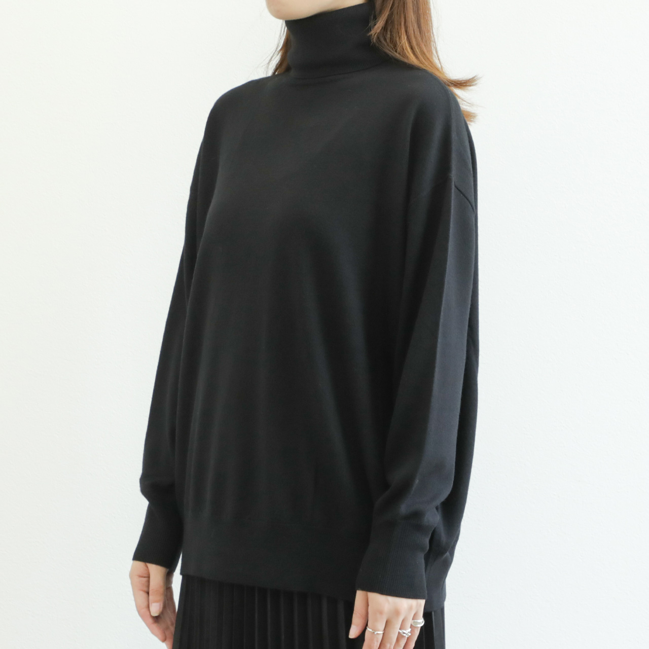 SACRA サクラ ニット タートルネック ビッグシルエット エクストラファイン メリノウール EXTRAFINE MERINO TOP 125536081 BLACK/ブラック