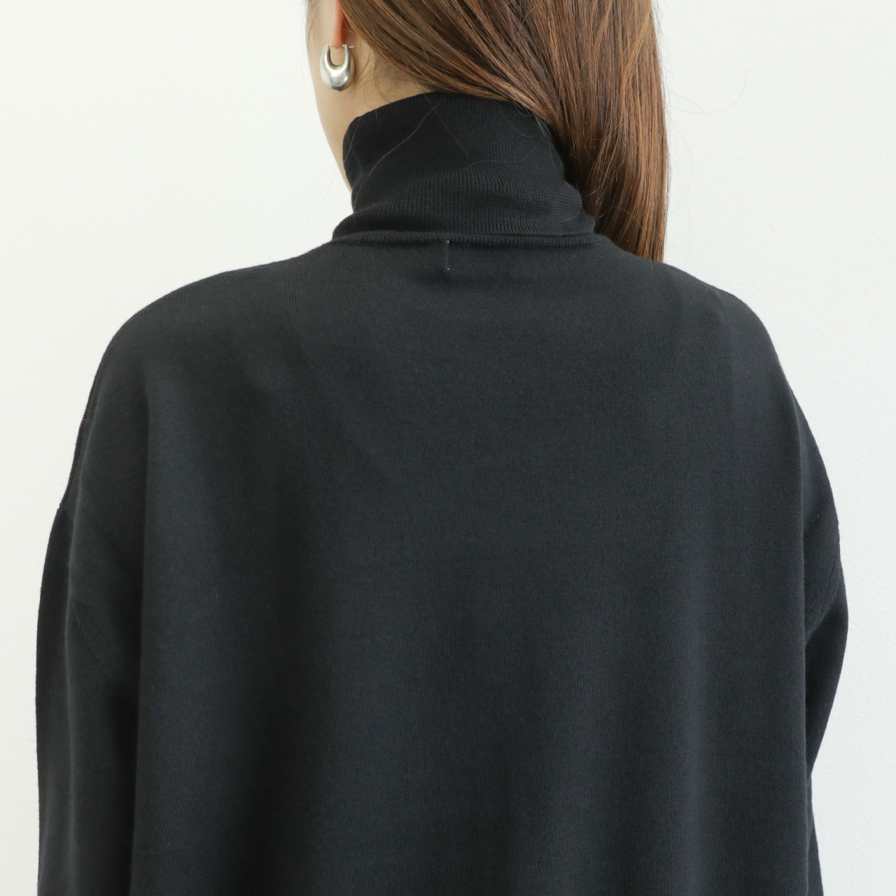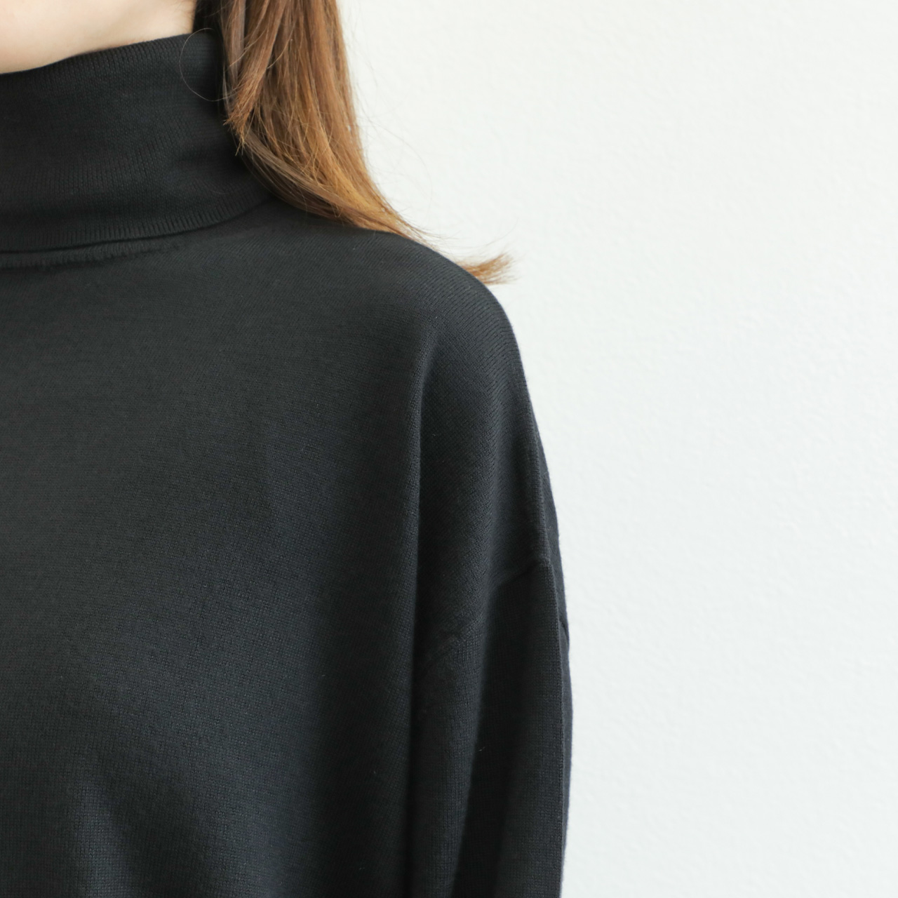 タートルネック部分と袖のリブが少し長く、くしゅっとしたシワが生まれることで柔らかさを感じるカジュアルスタイルが楽しめそうです。