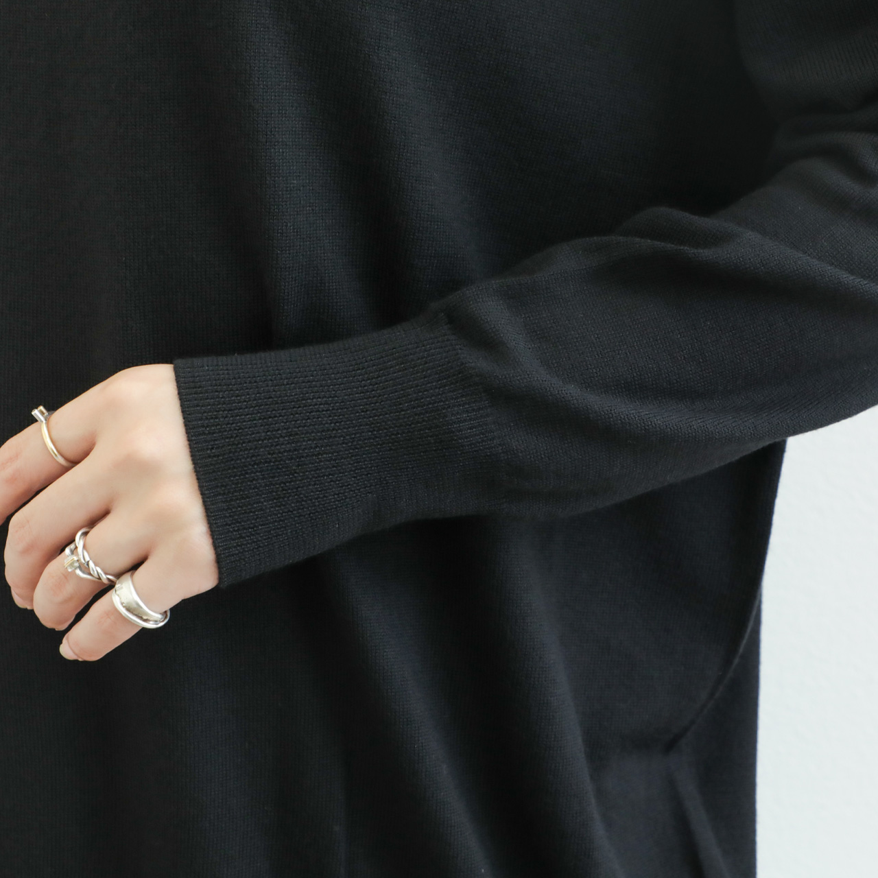 上質なエクストラファインメリノウールを使用したこちらは、絶妙なゆとりのオーバーサイズ感がポイント。