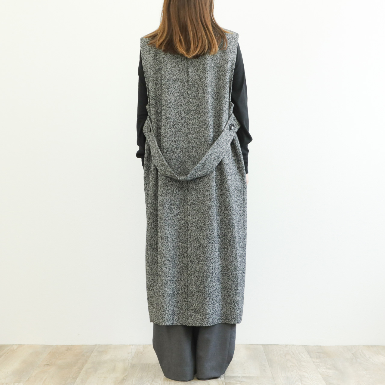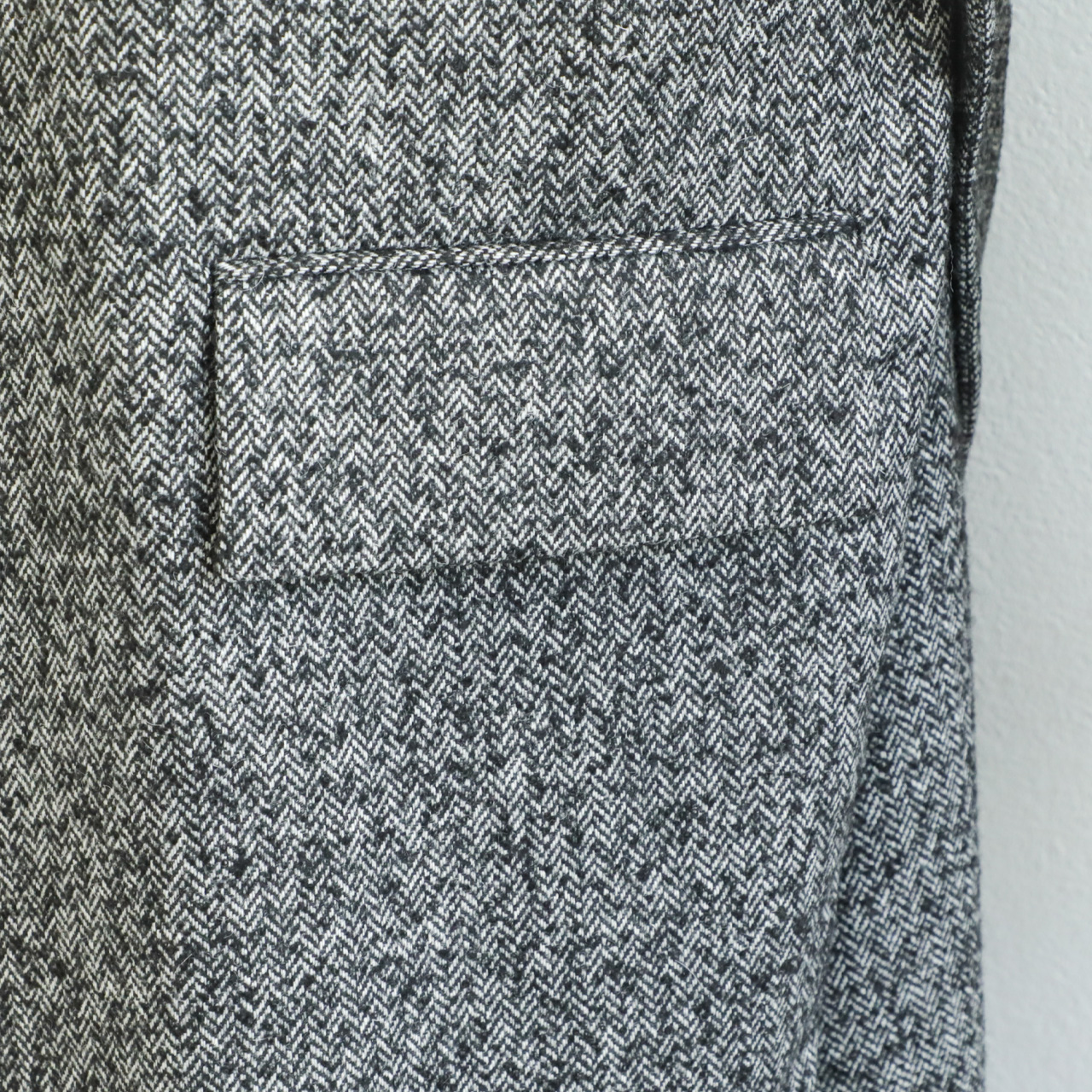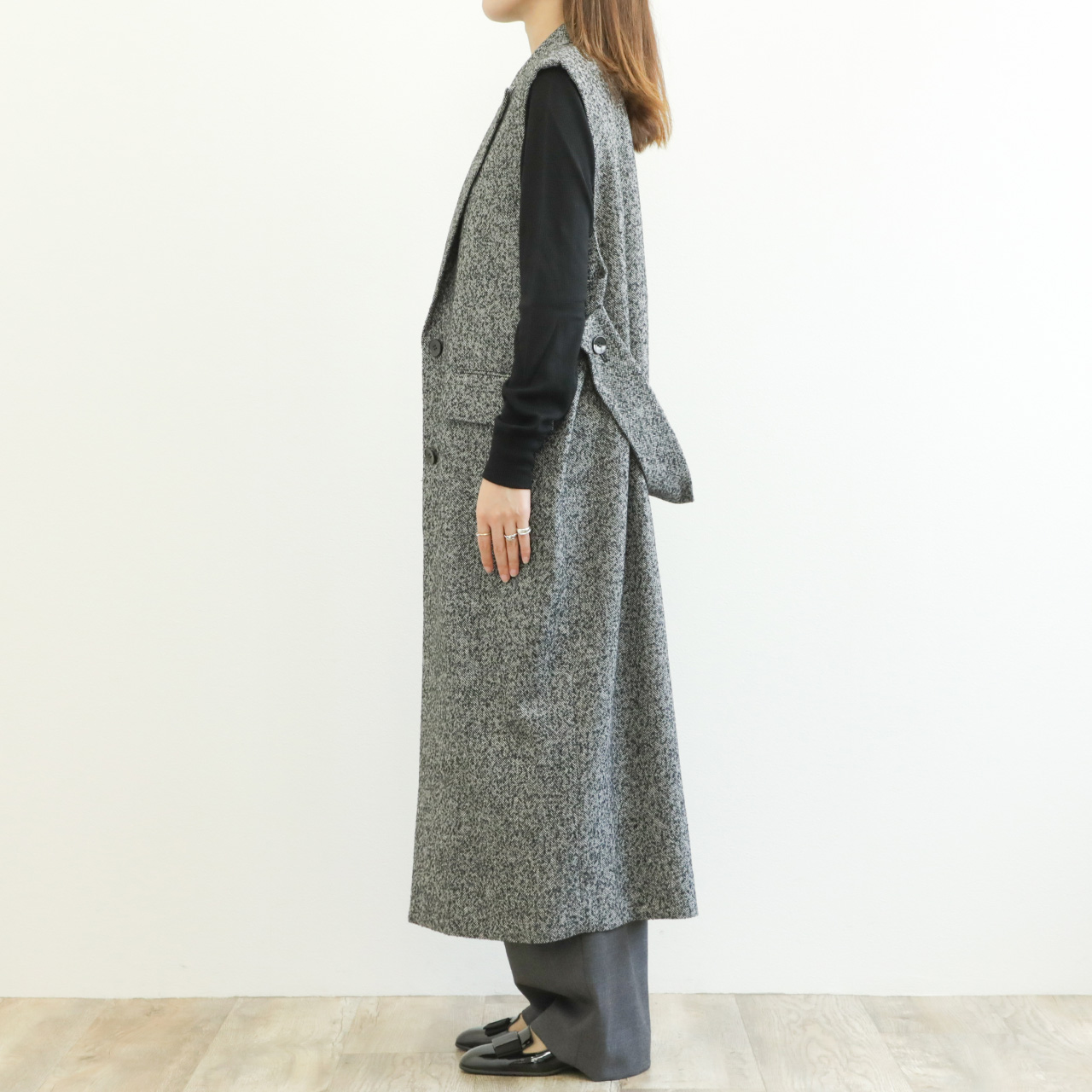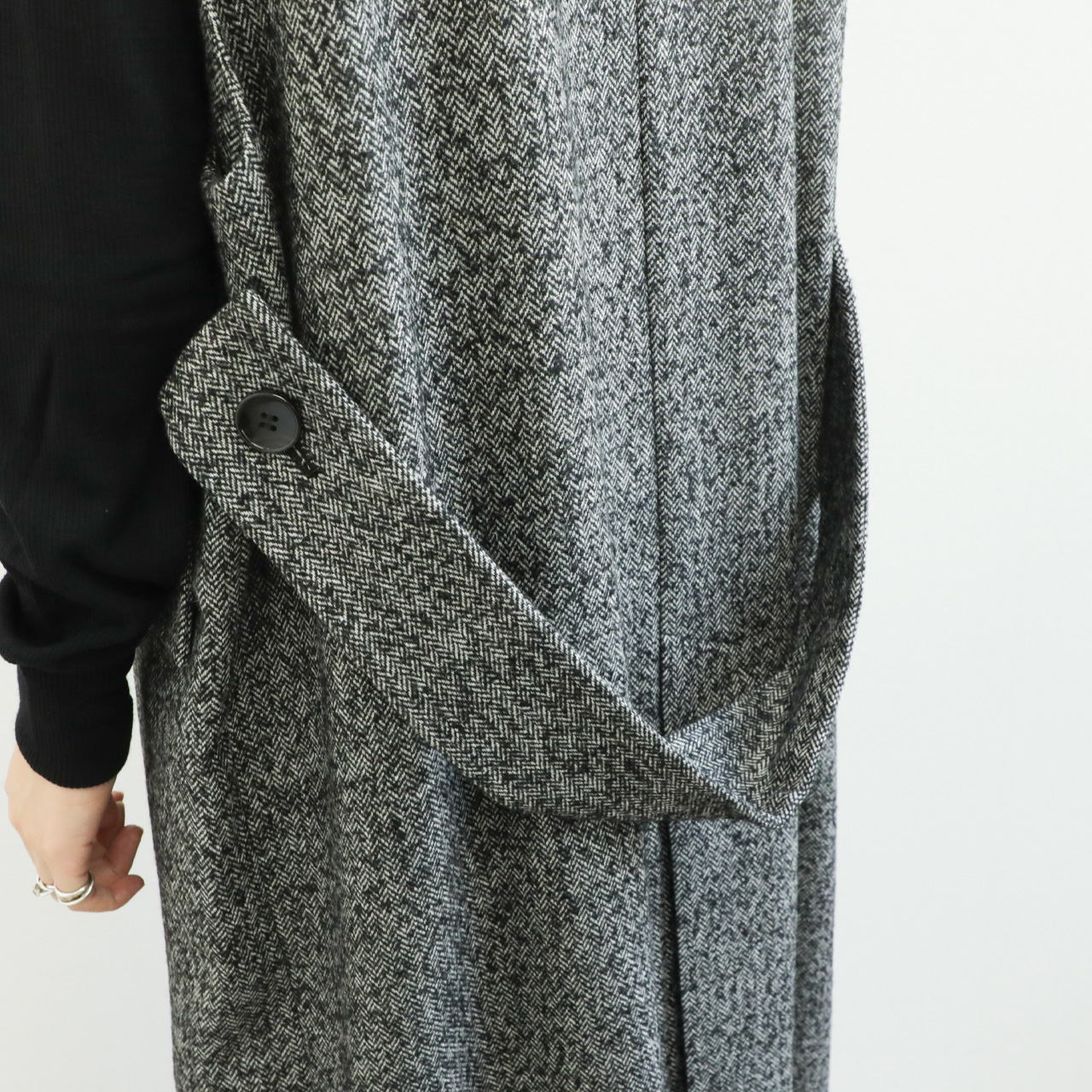 今季は上SACRA別注素材のイタリア老舗BALLI社の上質なヘリンボーンツィードを使用したテーラードロングジレをご用意しました。