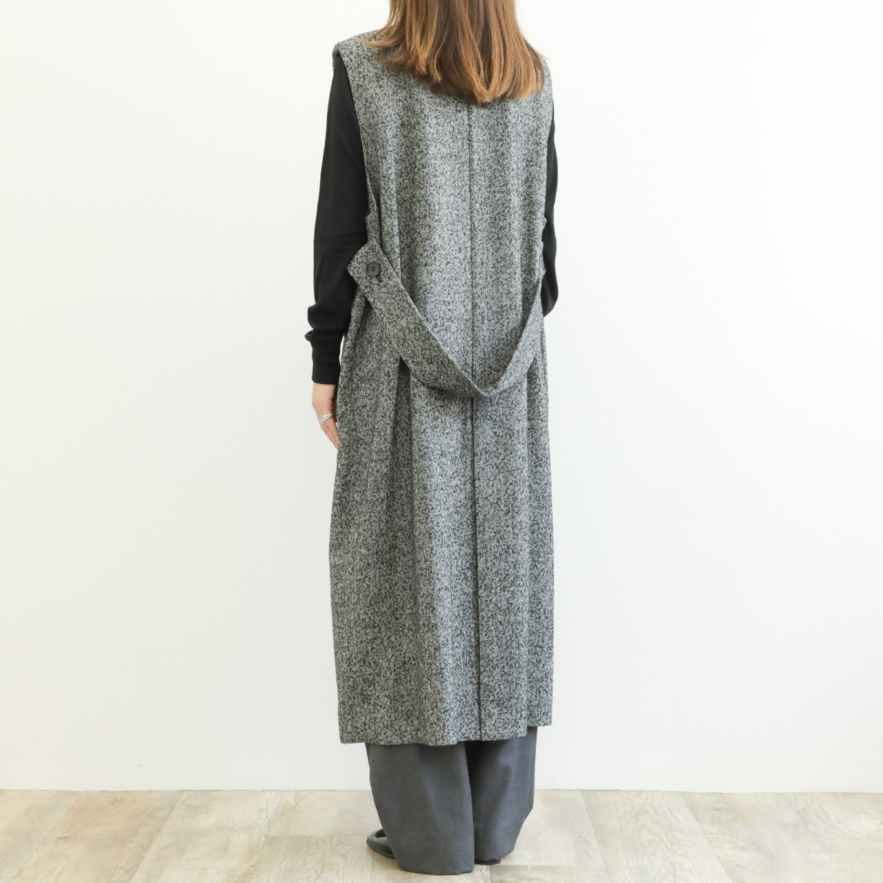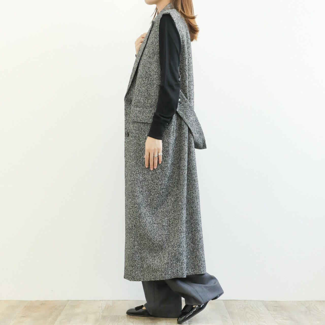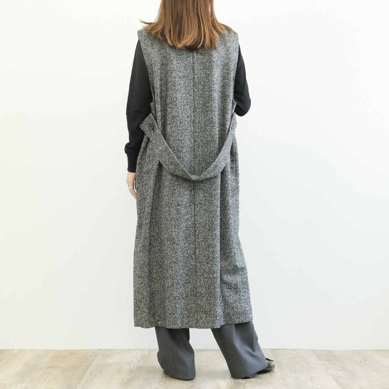 ロンTを合わせてジレらしく着るも良し、ニットを合わせてコート風に着こなすも良し。羽織るだけで上質な素材感が際立つ唯一無二の一着です。