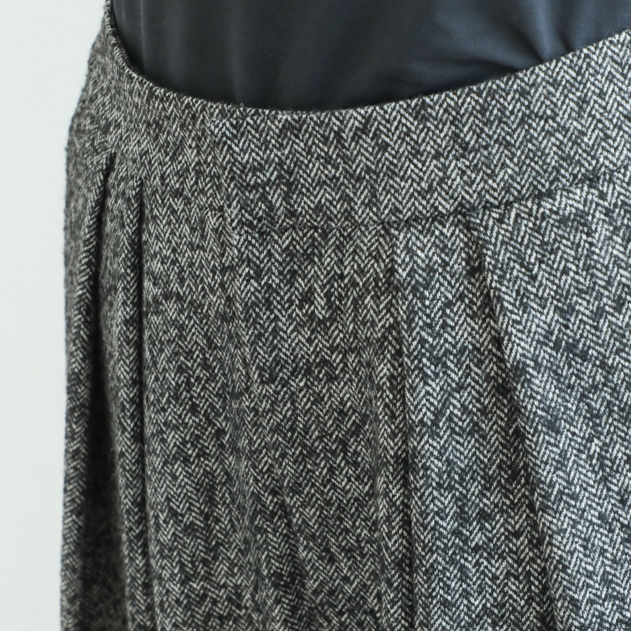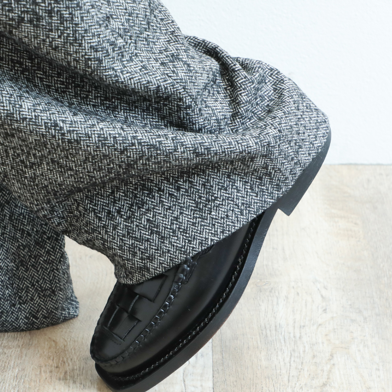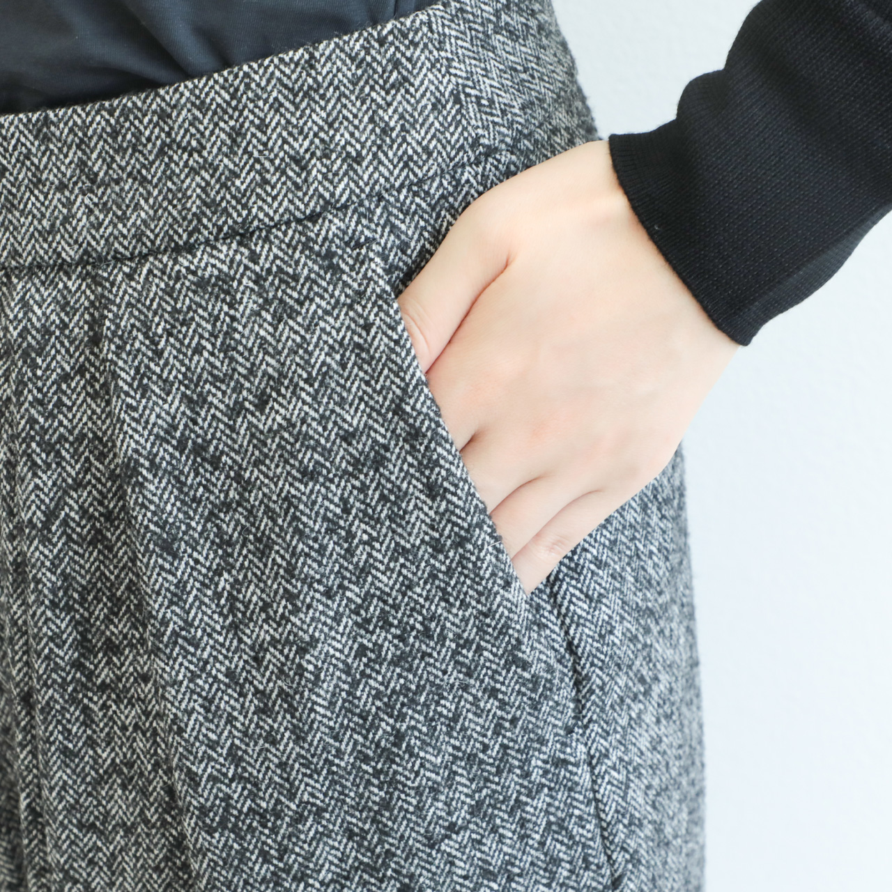 今季はSACRA別注素材のイタリア老舗BALLI社の上質なヘリンボーンツィードを使用したテーパードパンツをご用意しました。