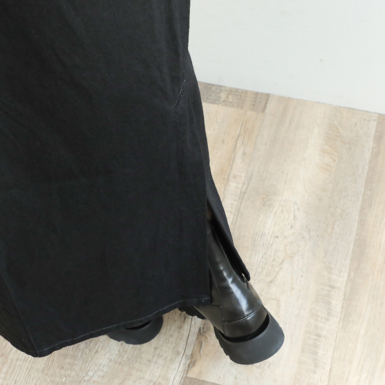 COCOと名付けられた本モデルはモード感と日常の着やすさを一つにした一着。オールブラックの潔い色合いに、立体的なタックと丸みのあるコクーンシルエットをプラス。