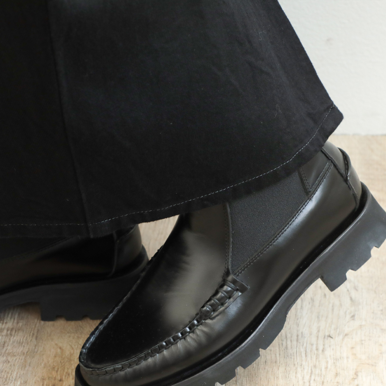 パンプス、スニーカー、ブーツ、サンダルと通年使える生地感な分、足元次第で表情を変えることができるのも本モデルのポイントです。