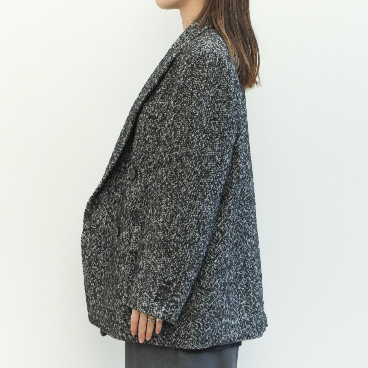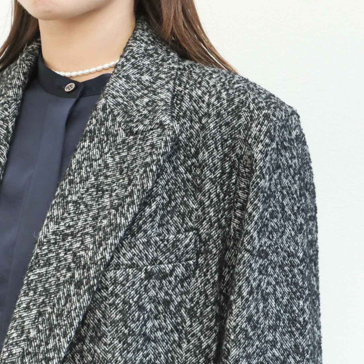 表情豊かな繊細なミニループ糸で織り上げられたビッグヘリンボーンツィードを生地に使用。