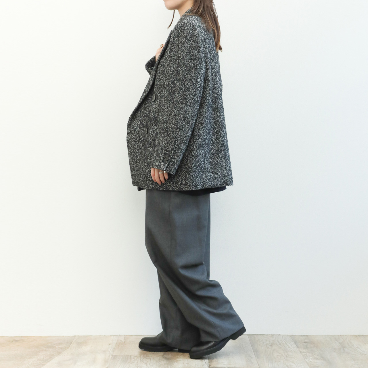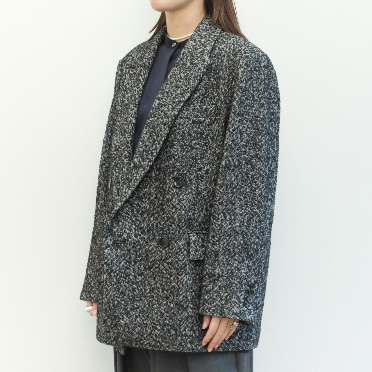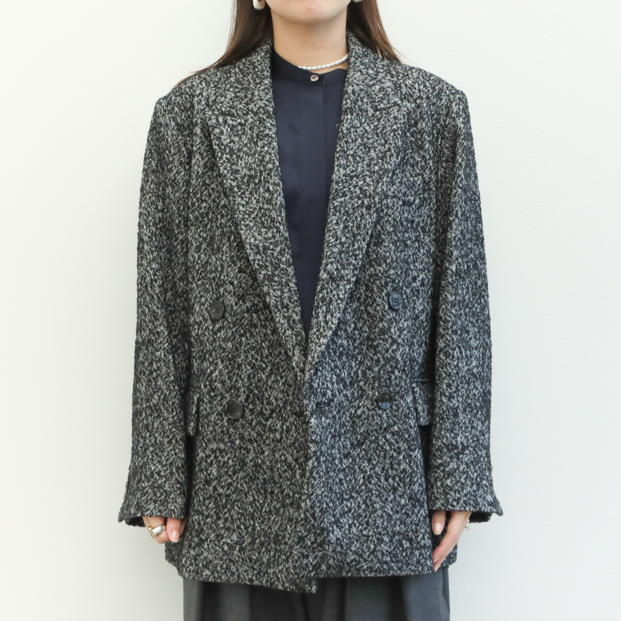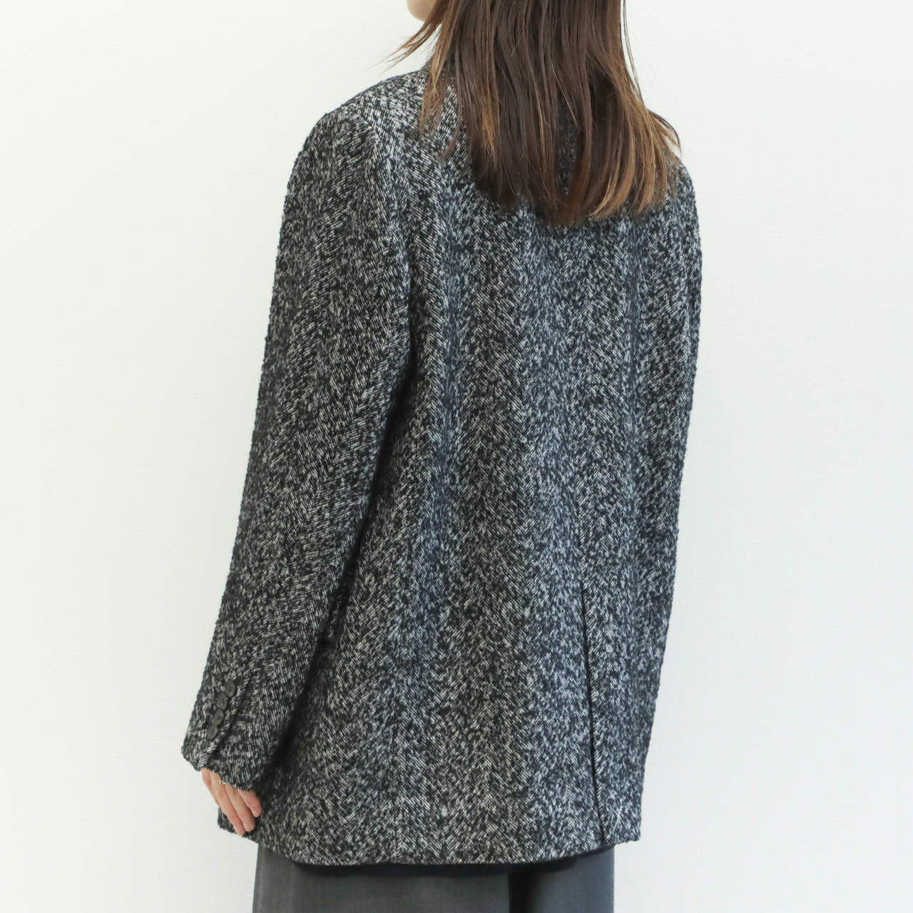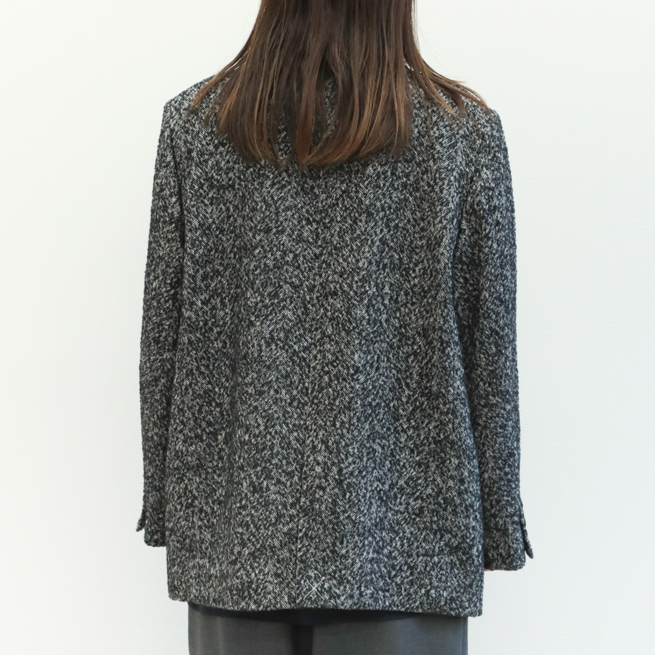 肩パッド入りの程よいビッグショルダーから生まれるオーバーシルエットがマニッシュな雰囲気を醸し出します。ライトアウター感覚のオーバージャケットは長い期間活躍する逸品です。