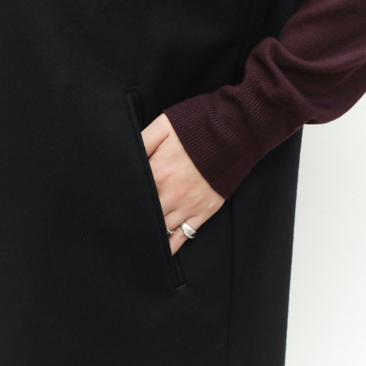 すっきりとしたIラインシルエットがモード感のある印象に。幅広いレイヤードスタイルをお楽しみ頂ける一着です。