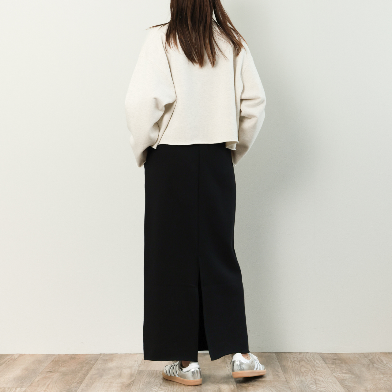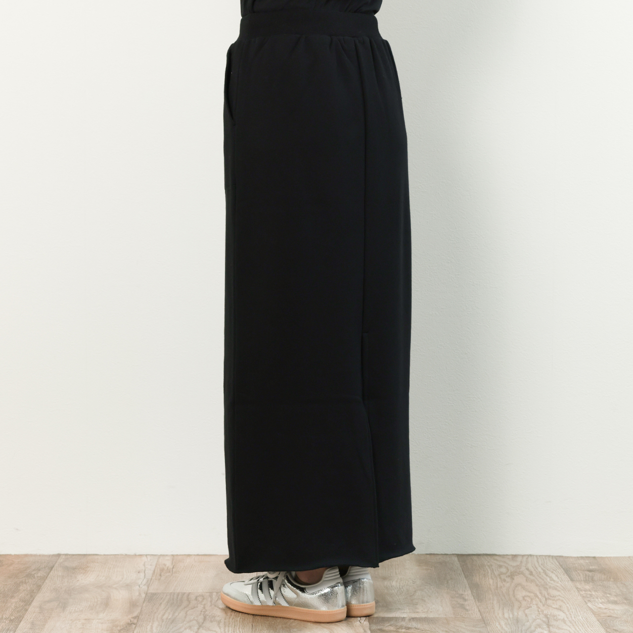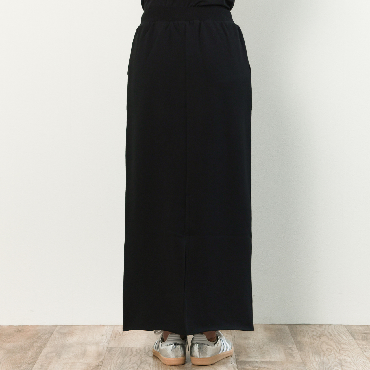 希少な編み機で編み上げられた国産裏毛素材を使用したスウェット素材のスカートはナローシルエットでありながらも、ふんわりと柔らかな生地感と、高い伸縮性からくる穿き心地の良さが魅力的。