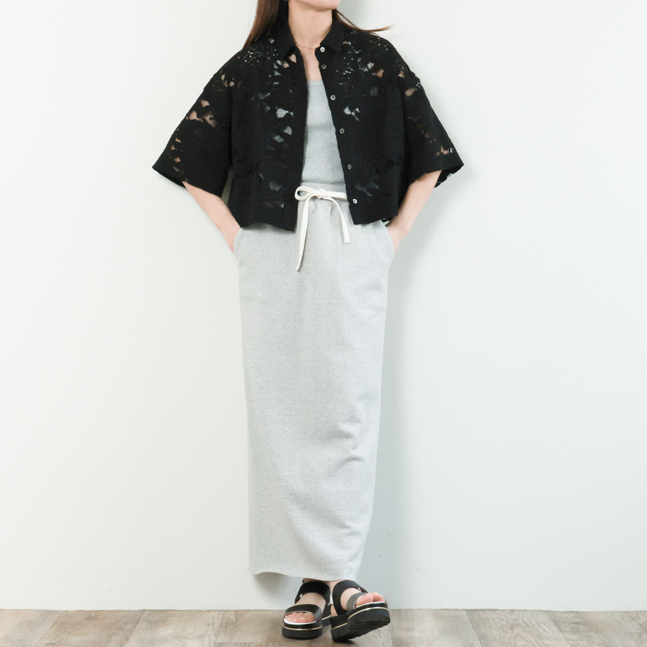今までのレースアイテムにはないクラスカジュアル感が新しい。一枚着としてはもちろん、羽織りとして暑い時期まで長く活躍するシーズンムード高まる一着です。