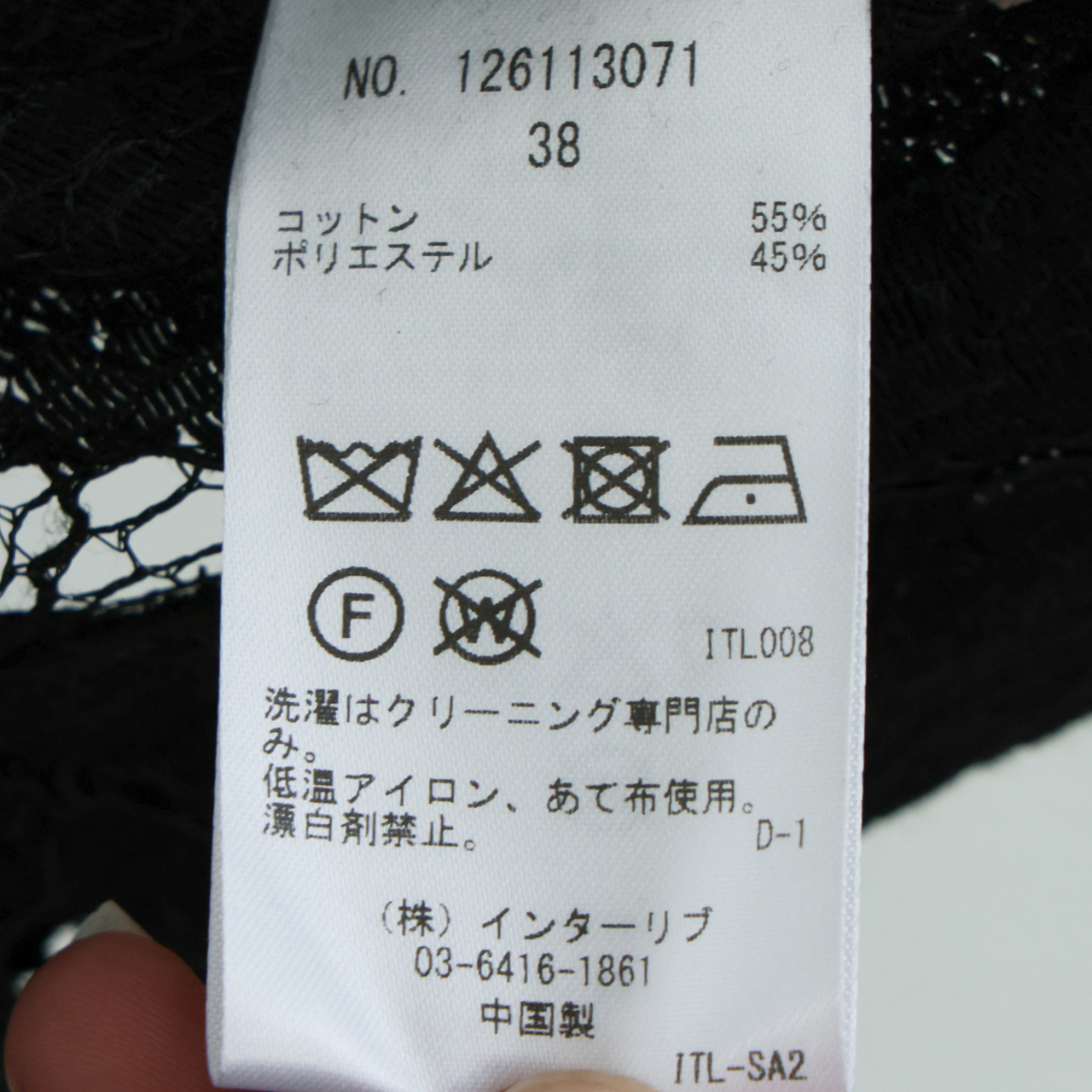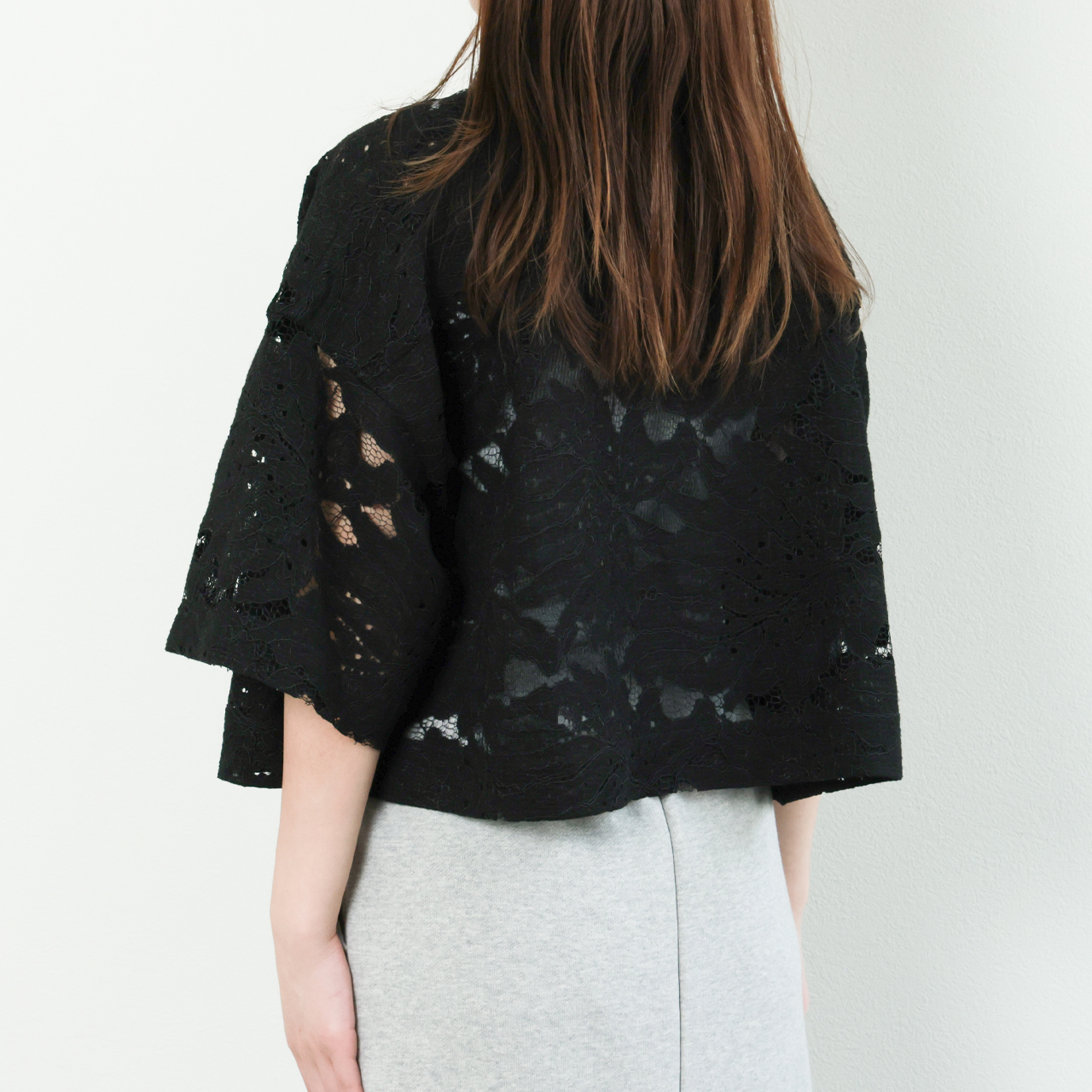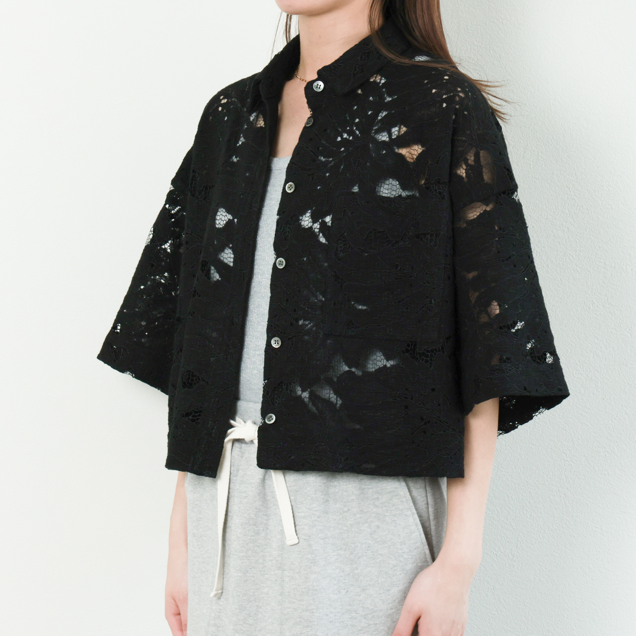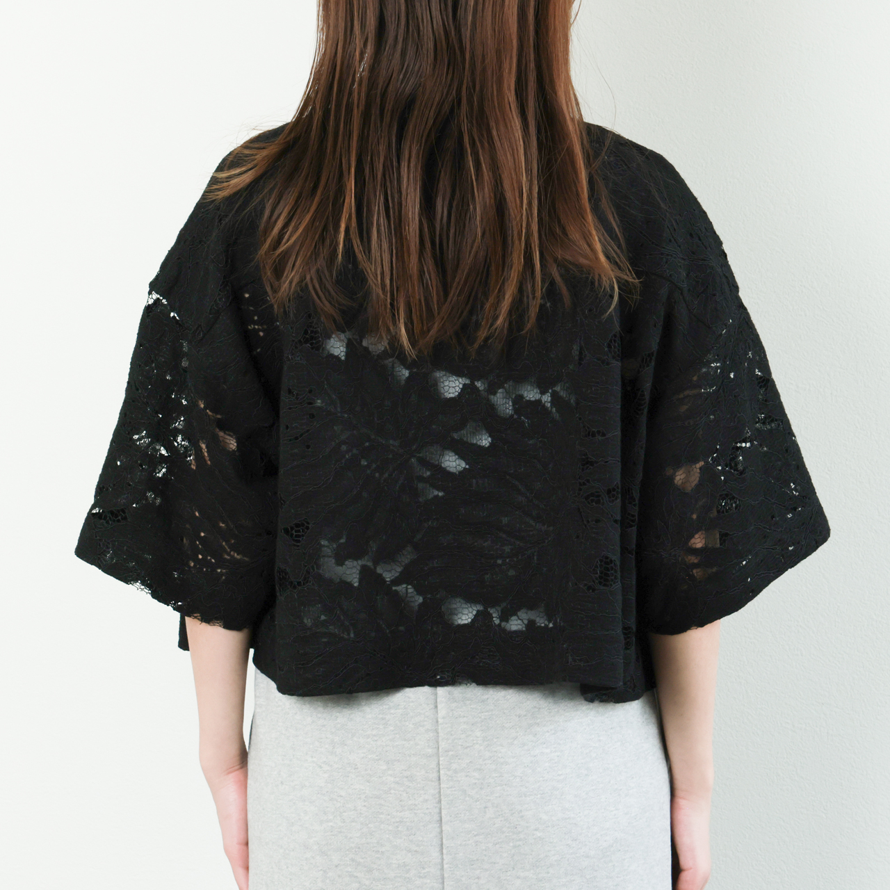 SACRA サクラ レディース シャツ ニット ラッセルレース 6分袖 コットン ポリエステル クロップド丈 LEAF RASCHEL LACE CROPPED SHIRT 126113071 BLACK/ブラック