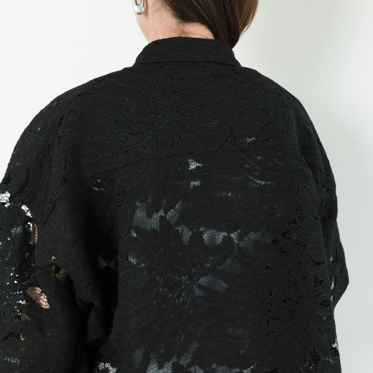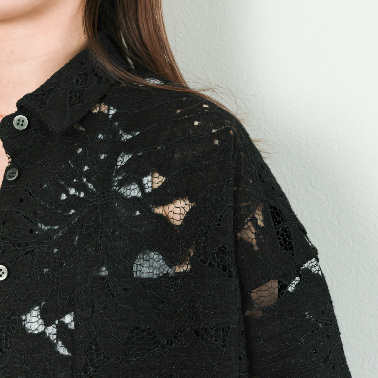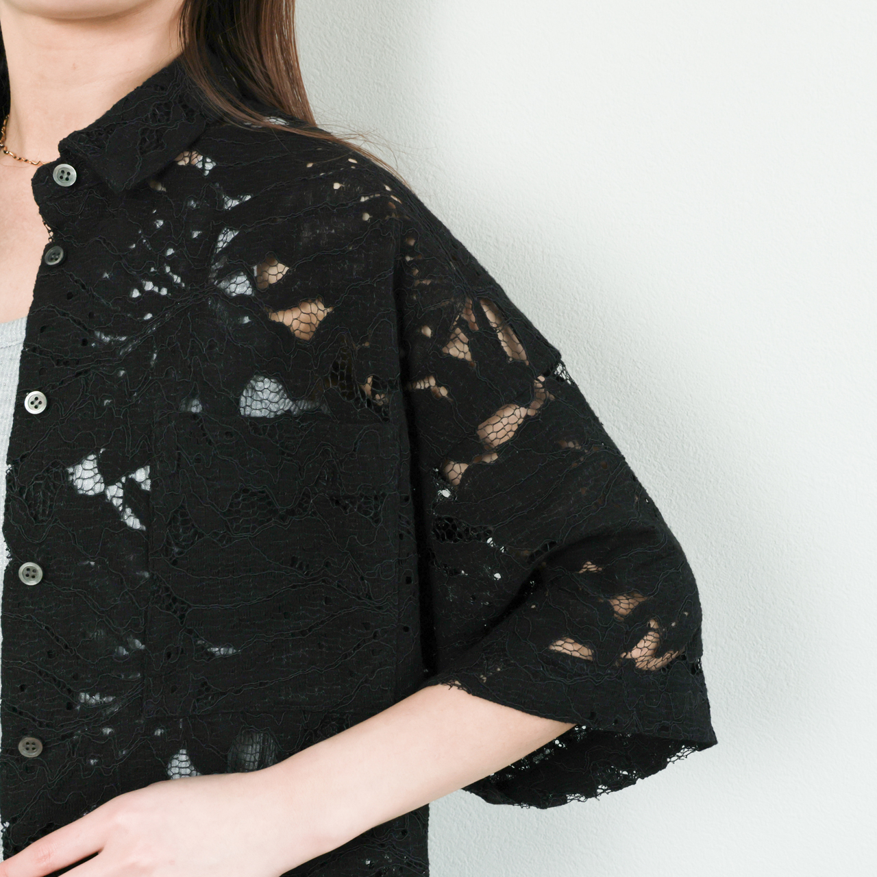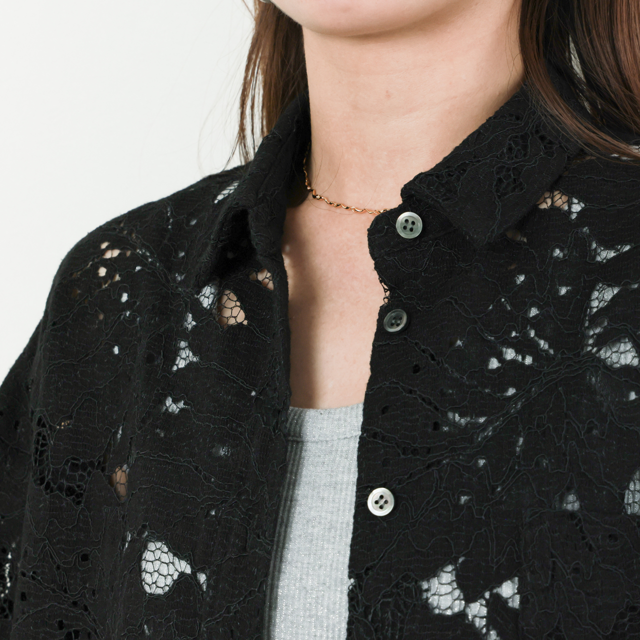 モデル LEAF RASCHEL LACE CROPPED SHIRT